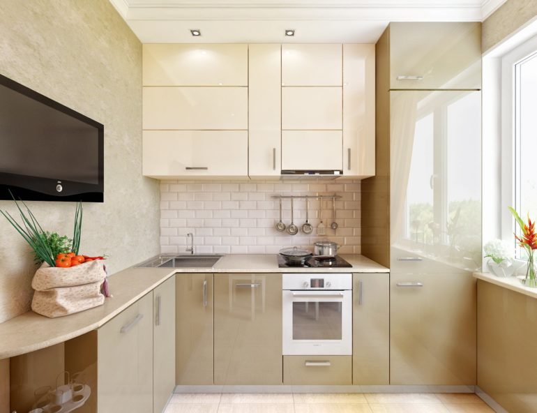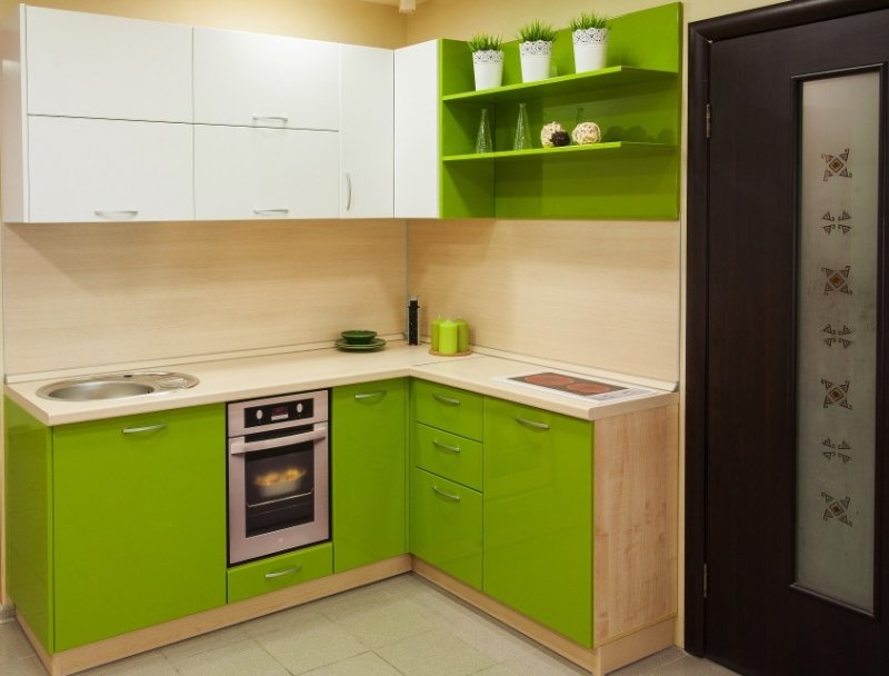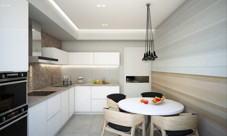 La disposition en L vous permet de diviser la cuisine en un espace de travail et une mini-salle à manger