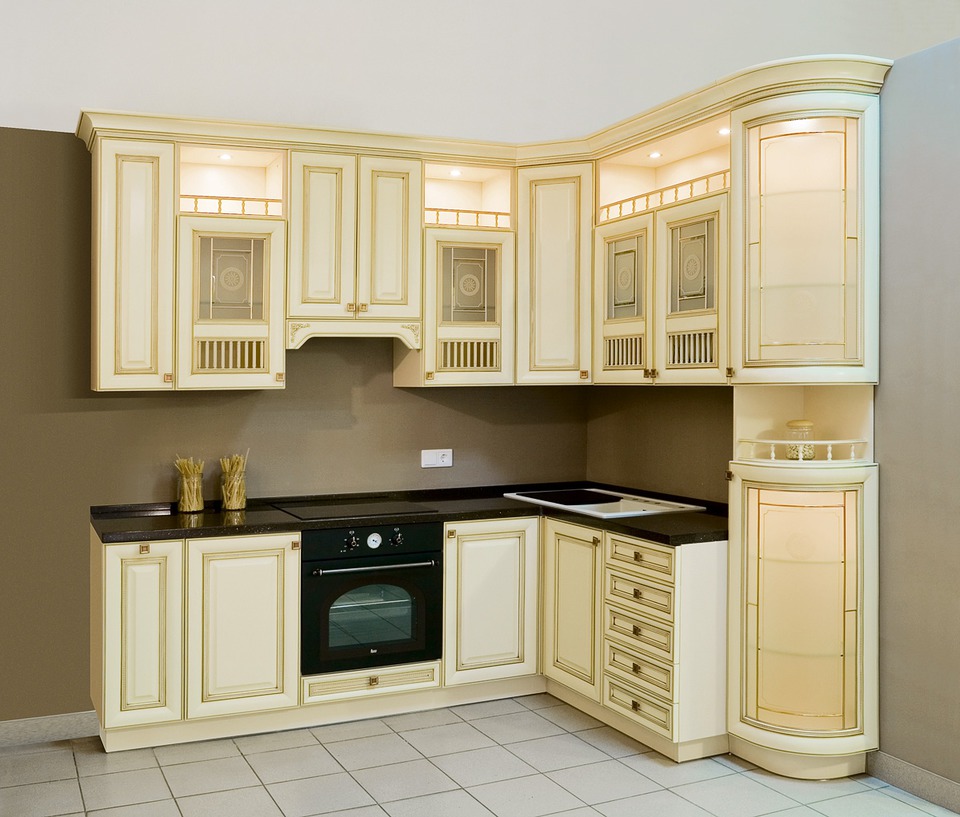 Les cuisines d'angle offrent un espace de travail simple et efficace, vous permettent d'installer des armoires, des appareils électroménagers le long de murs rectangulaires avec une aire ouverte au centre. Cette disposition présente plusieurs avantages: