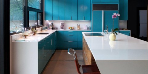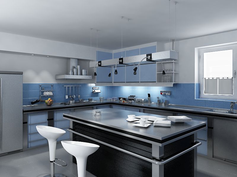 La légèreté bleue n'apporte que dans des pièces lumineuses saturées de soleil.Une bonne option serait de combiner le bleu avec le blanc. La couleur blanche donnera sa légèreté à la cuisine, mais uniquement en conjonction avec la lumière du soleil. Après tout, la couleur bleue a la particularité de surcharger l'espace. Le meilleur choix serait des nuances de bleu clair. Une teinte foncée donnera encore plus de gravité. Le bleu ne doit pas trop dominer - tout doit être modéré.