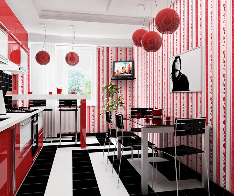Le rouge est combiné avec de nombreuses couleurs. Un mélange de beige délicat, de blanc rafraîchissant - adoucit le rouge. La plénitude avec des couleurs sombres améliore son effet.