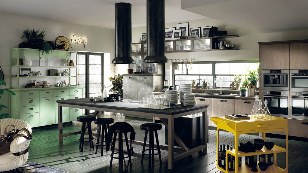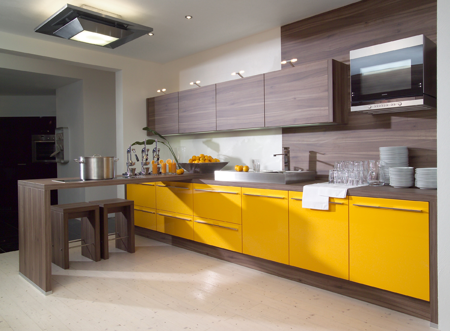 - La nuance brun foncé souligne positivement la grande taille. Une grande cuisine aux couleurs claires peut sembler terne. Peu vaut mieux éclairer.