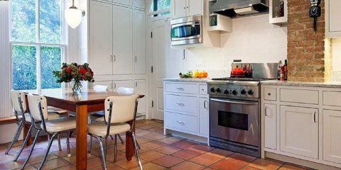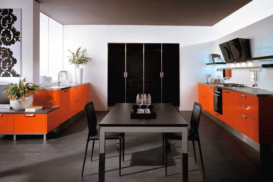 Une cuisine étroite semblera plus large si vous rendez les murs orange
