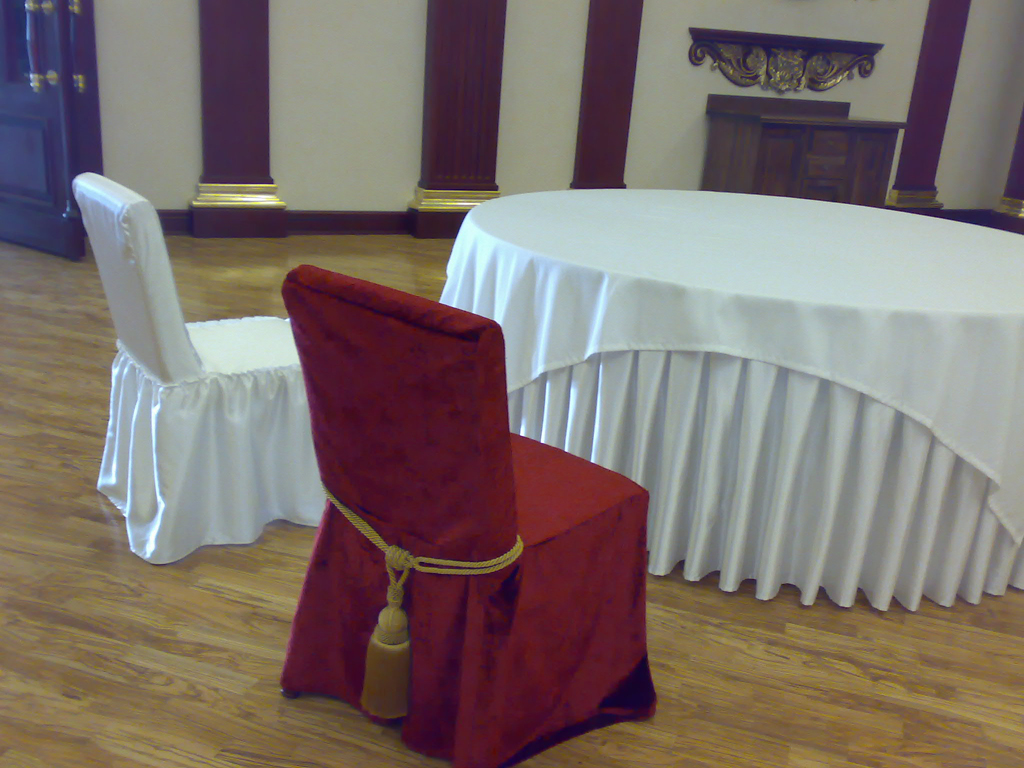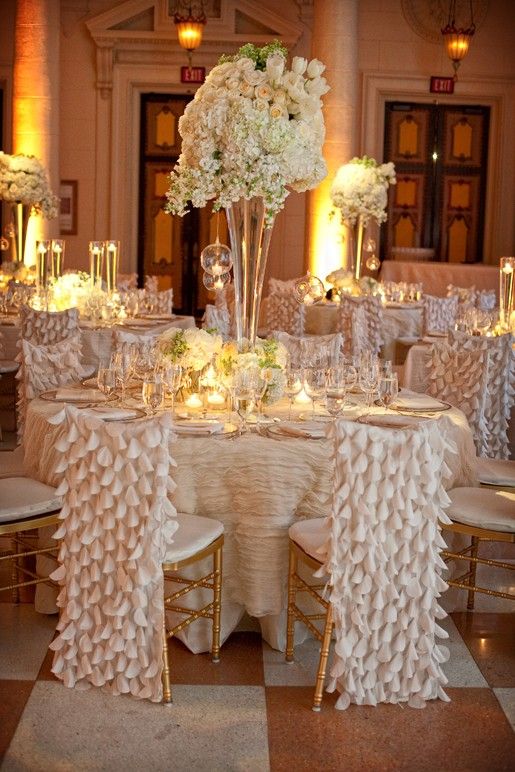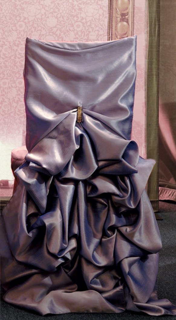 - Couvertures de luxe. Les draperies «de luxe» se distinguent par leur coût élevé, une couture de haute qualité, une décoration abondante avec des perles, des strass, des arcs, des glands et des vallées. Des modèles similaires sont destinés aux banquets, mariages, utilisation dans les restaurants chers.