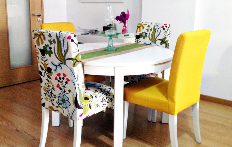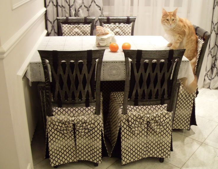 Des housses de chaise originales pour toute cuisine, permettent de compléter ou de mettre à jour partiellement l'intérieur existant, pour le rendre plus confortable. Des pièces similaires adaptées à presque tous les intérieurs peuvent être utilisées à la fois avec des chaises et des tabourets, des fauteuils, des canapés. Les housses appropriées sont achetées dans les magasins de textile à domicile, cousues seules, et luxueuses et festives sont commandées à l'atelier de couture.