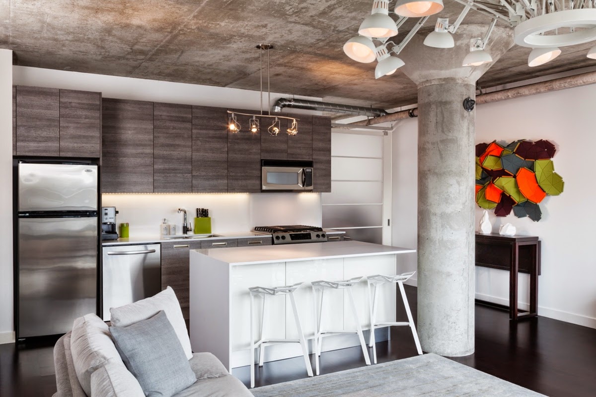 - Loft Il implique l'utilisation de tons sombres à l'intérieur, le plus souvent avec l'ajout de briques, de nuances de béton, de métal et de bois.