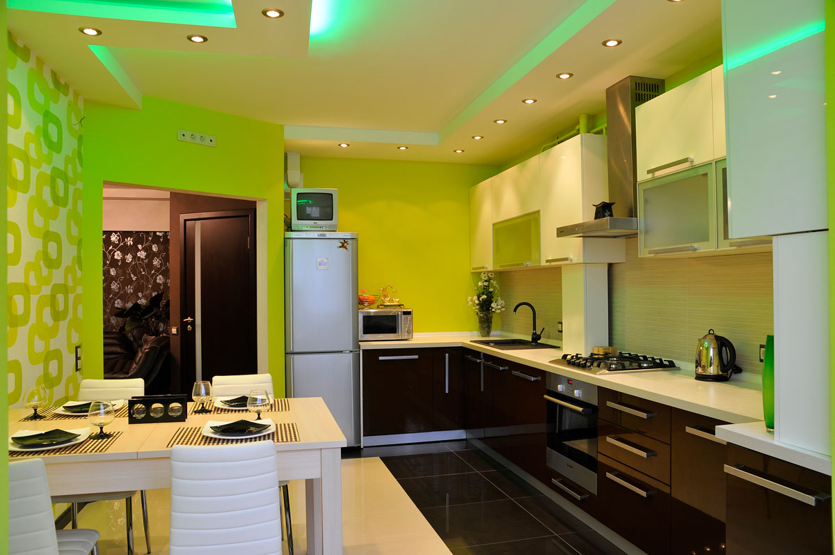Informations supplémentaires: Lorsque vous choisissez la couleur des murs de la cuisine, vous pouvez donner votre préférence au vert ou au rouge. Par exemple, vert clair ou pistache. contribuera à une bonne digestion, ainsi qu'à égayer. Le rouge stimule l'appétit.