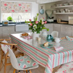 Nappe à imprimé floral à l'intérieur d'une cuisine de style provençal