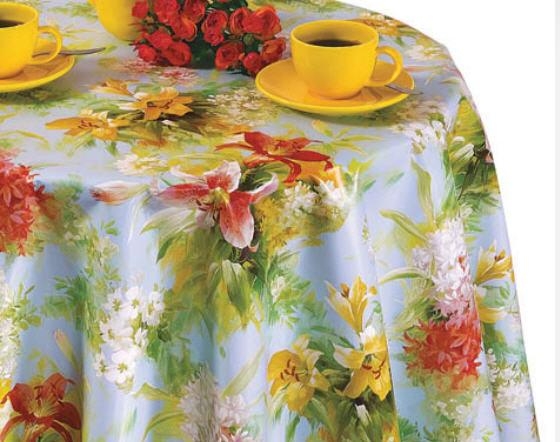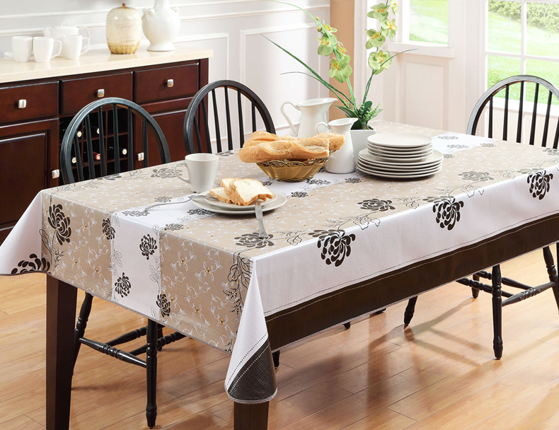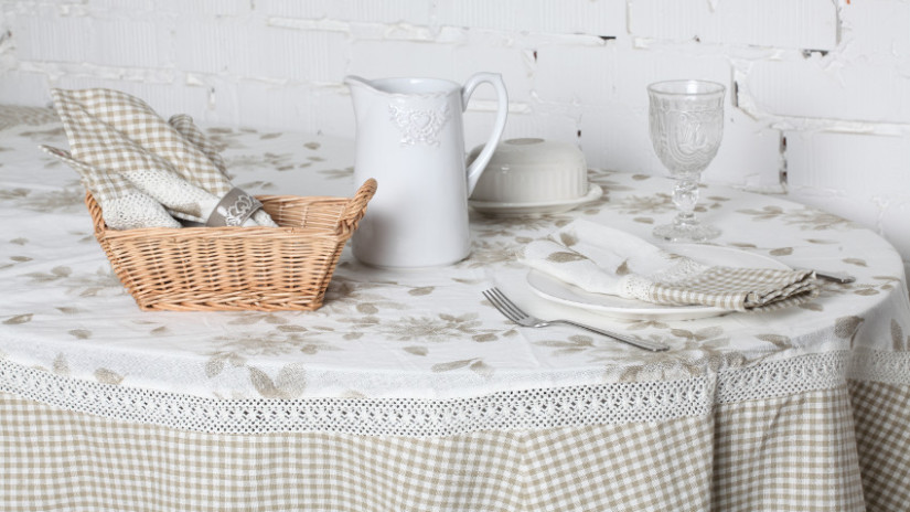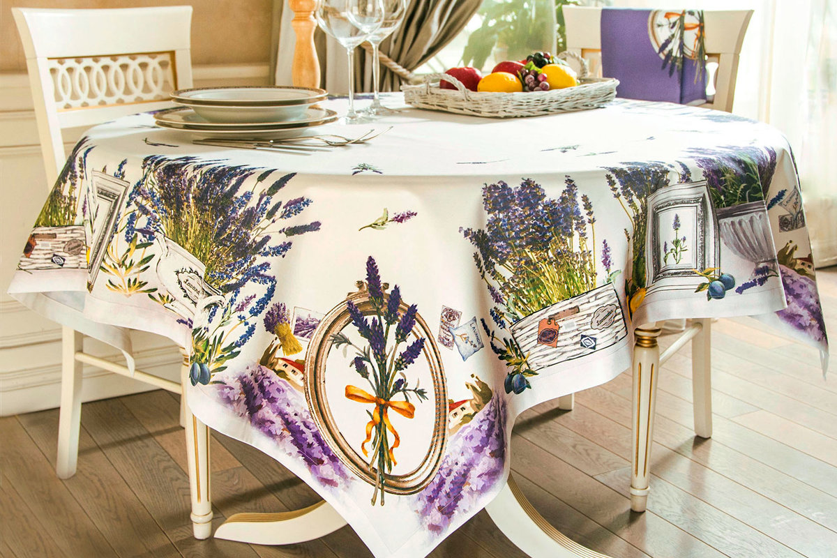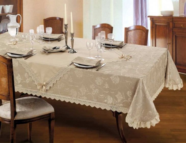 Selon la configuration de la table, vous devez choisir une nappe. Par exemple, pour une instance ovale avec un comptoir coûteux, une nappe ovale sur la table de la cuisine est hydrofuge.