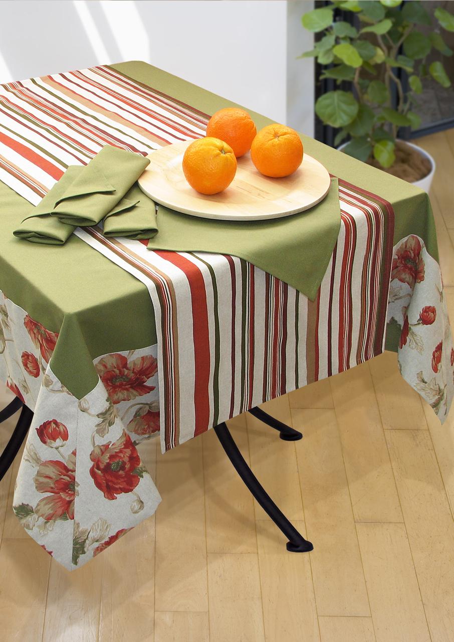 La nappe de toute forme peut être complétée par des serviettes et autres éléments textiles.