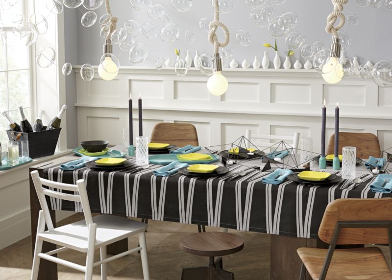 Une nappe carrée sur une table rectangulaire est une décision plutôt audacieuse