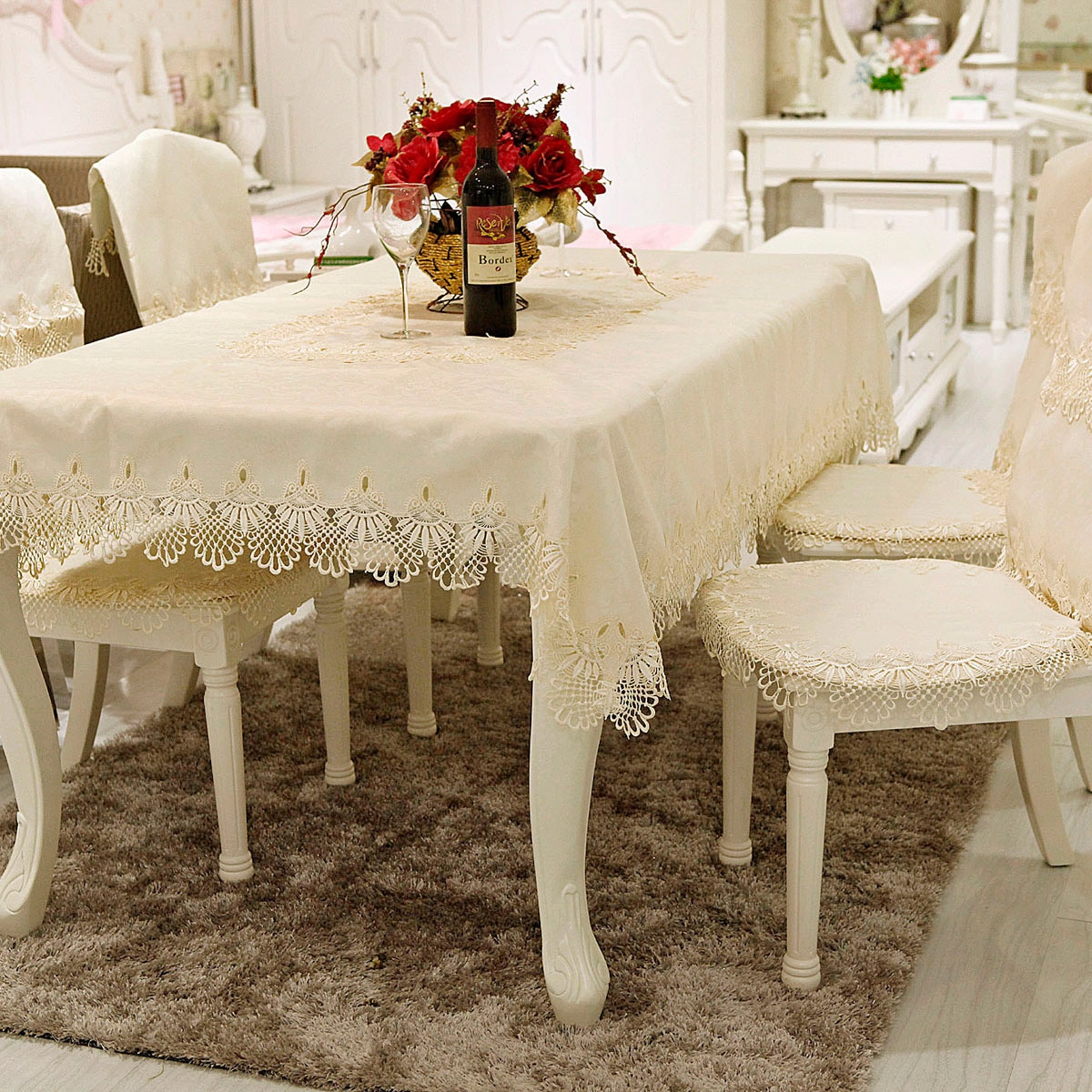 - Presque toutes les portions conviennent aux nuances claires et blanches. Une telle nappe est idéale pour les vacances et pour un dîner ordinaire, elle est universelle. Le blanc avec de la dentelle est une option élégante pour les célébrations luxuriantes. Lin blanc, soie, jacquard - délicieux cadrage de la table.