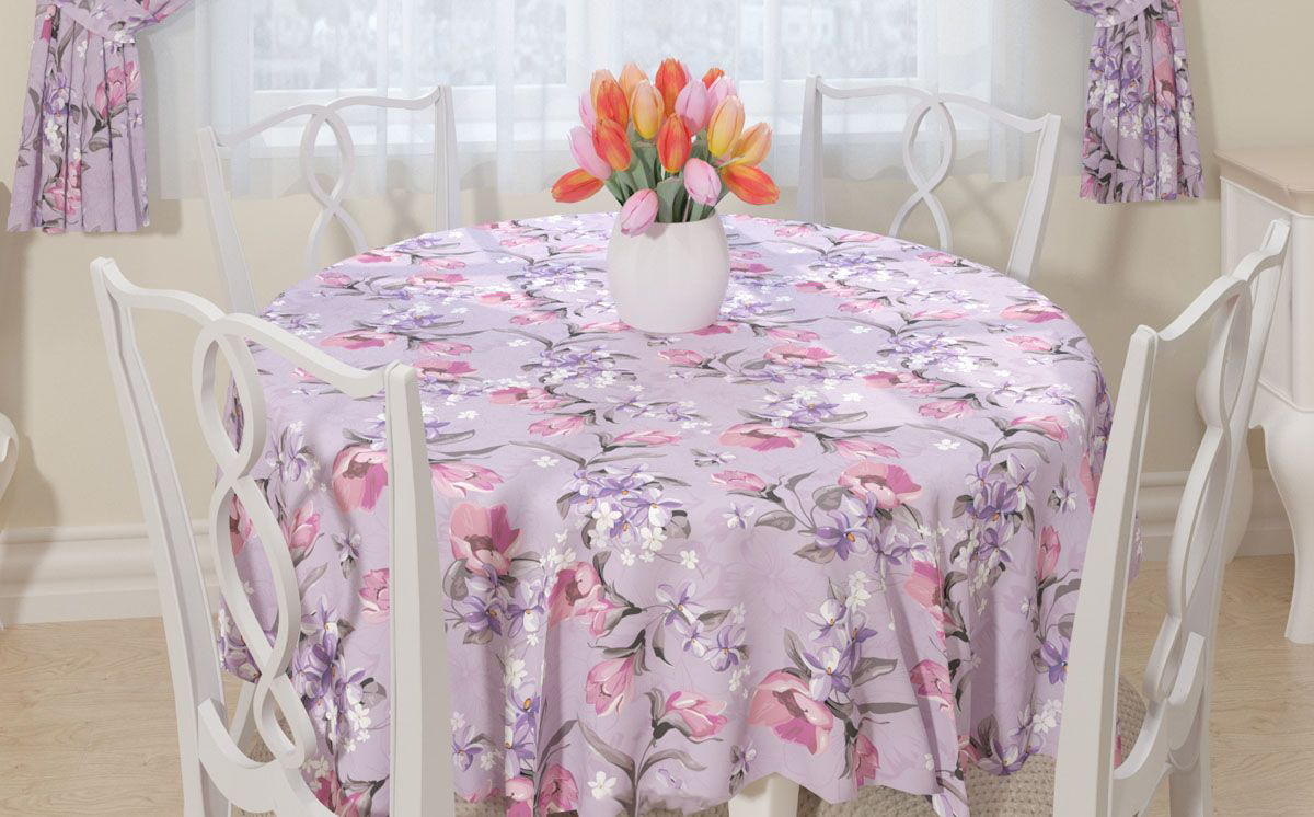 - une table ronde pour la cuisine est une nappe appropriée, à la fois de forme ronde et carrée, disposée en diagonale;