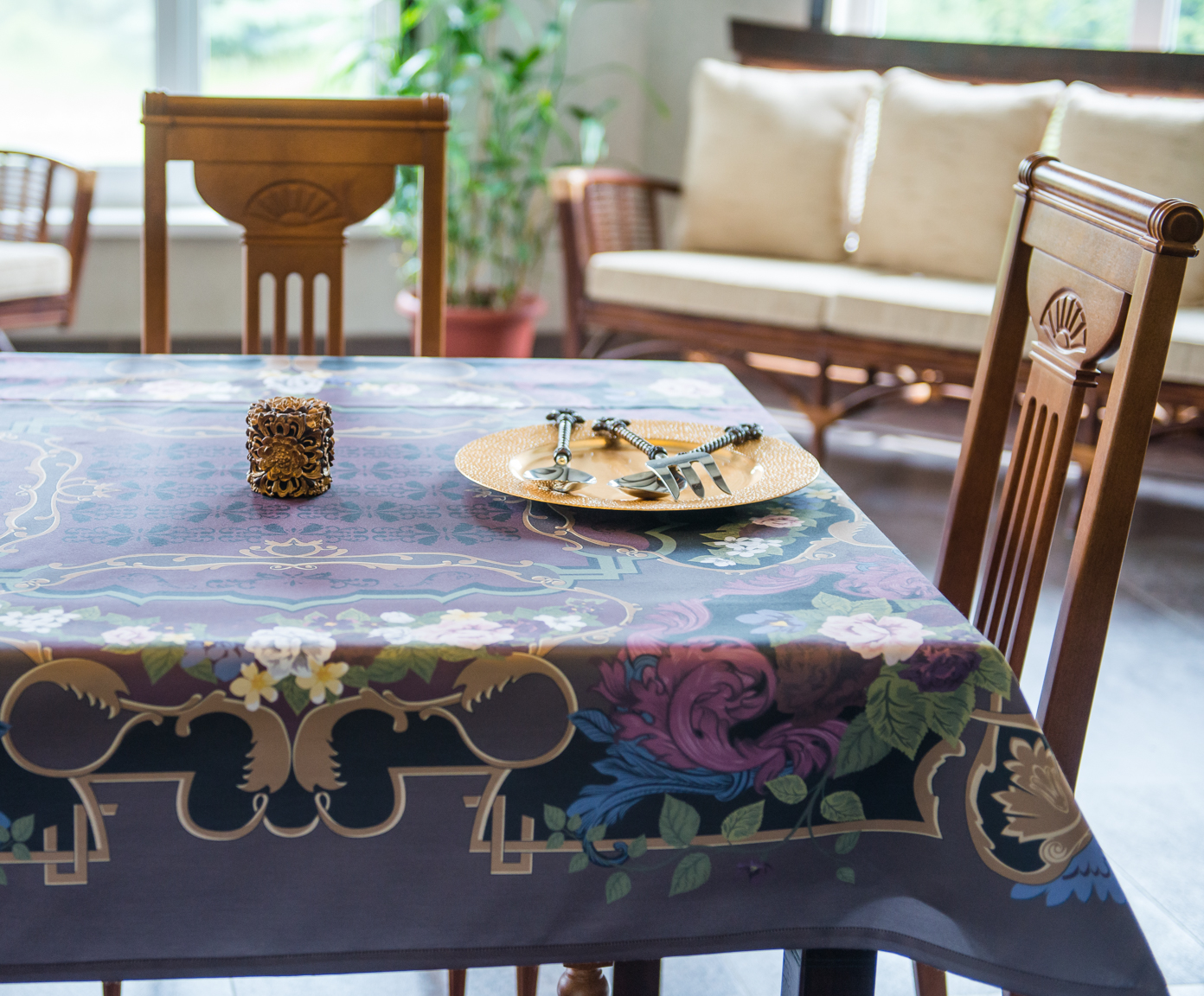 - Manger (tous les jours et solennellement), des toiles diverses, donnent à la table une composition complète, protègent la surface contre divers types de dommages.
