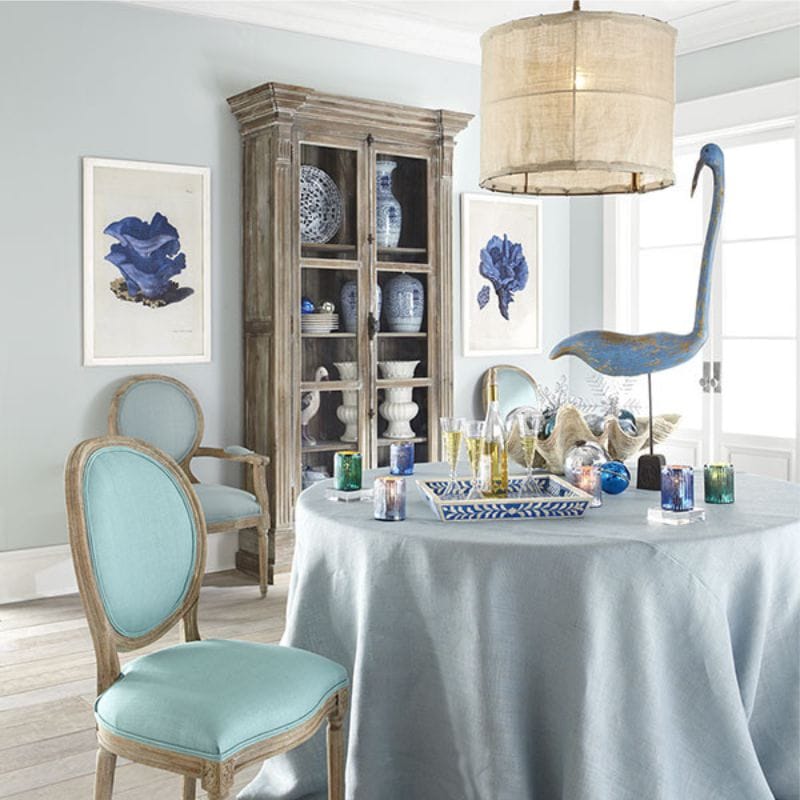 - Bleu, se marie bien avec le menu de poisson et les fruits de mer. L'ombre froide calme, favorise la détente, la relaxation.