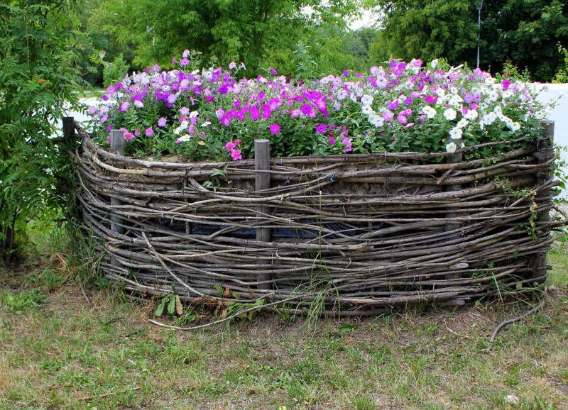 - Clôture décorative. De beaux designs complètent la conception du paysage sur le site. Le matériau de la clôture doit être léger et aéré, mais créer en même temps un sentiment de sécurité et d'intimité. Le design décoratif englobe non seulement le périmètre d'une propriété privée, mais aussi des parterres de fleurs, des allées de jardin et divers éléments de design que vous souhaitez mettre en évidence. Cette fonction peut être remplacée par une clôture en plastique multicolore ou en bois de brindilles.