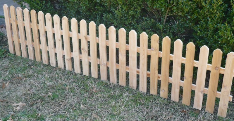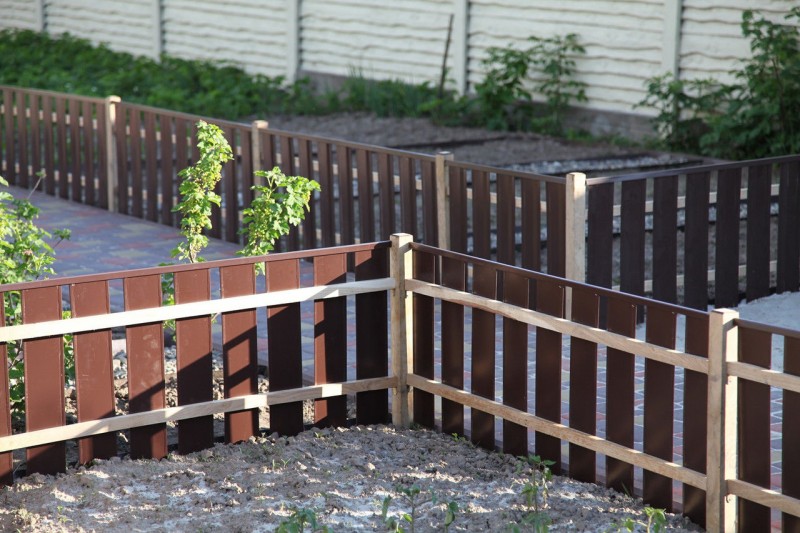 La plus grande distribution de clôtures a remporté la clôture ou la clôture. Ce sont des lattes verticales avec différentes formes supérieures, qui peuvent être rondes, pointues ou sous la forme d'une forme géométrique complexe. Le piquet est installé à une hauteur ne dépassant pas un mètre et peint en différentes couleurs.