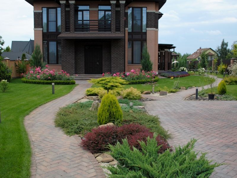 Le bâtiment résidentiel est souvent placé plus près du bord avant du site, laissant une place pour un garage ou un parking en face de celui-ci