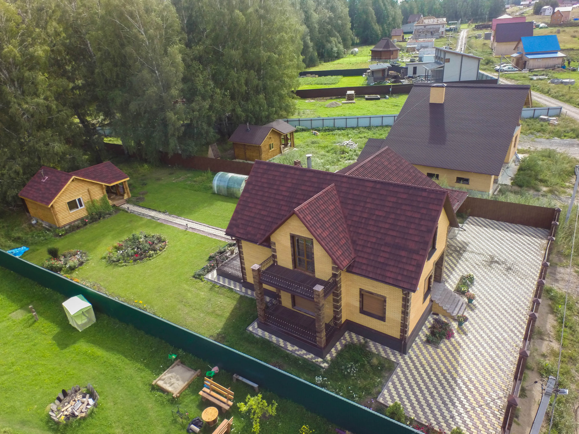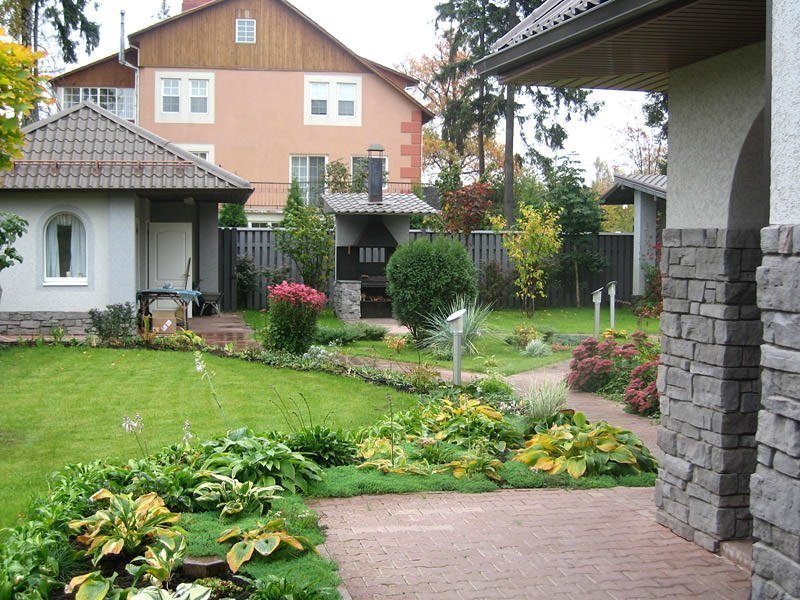 Les bâtiments résidentiels, autres objets importants, sont placés de manière à être faciles à utiliser sans violer les frontières des voisins. Pour cela, les distances régulées de la clôture sont respectées. Si la maison est destinée à une grande famille, il est logique de la faire en forme de T, en L - alors il y aura plus d'espace pour les loisirs, le placement des espaces verts.
