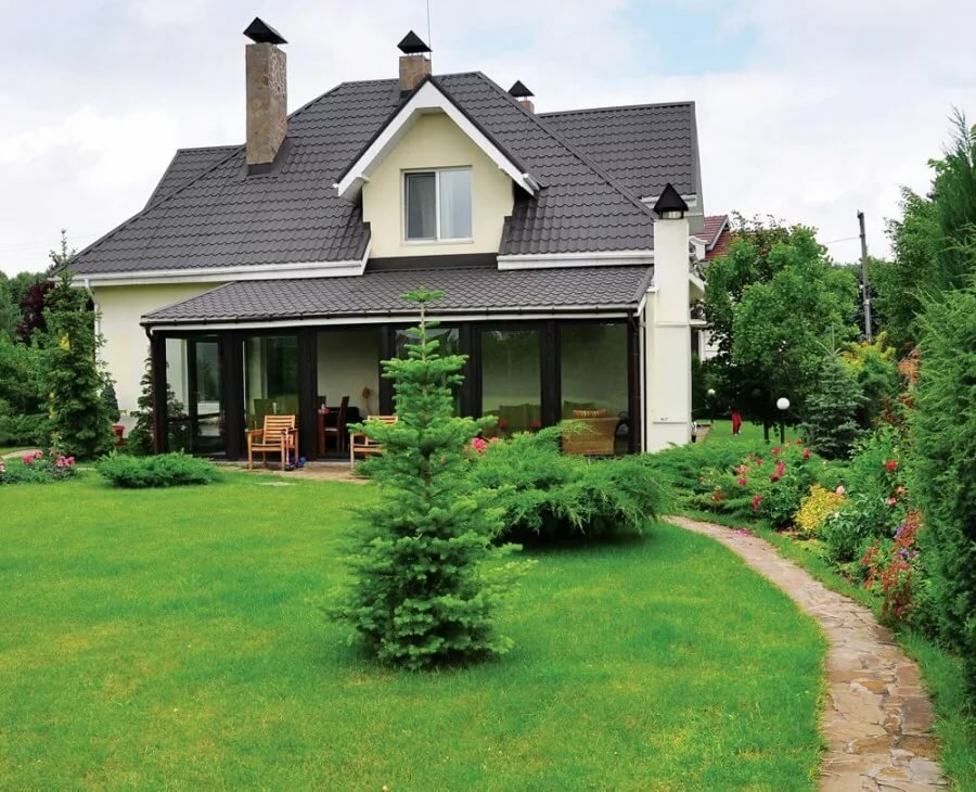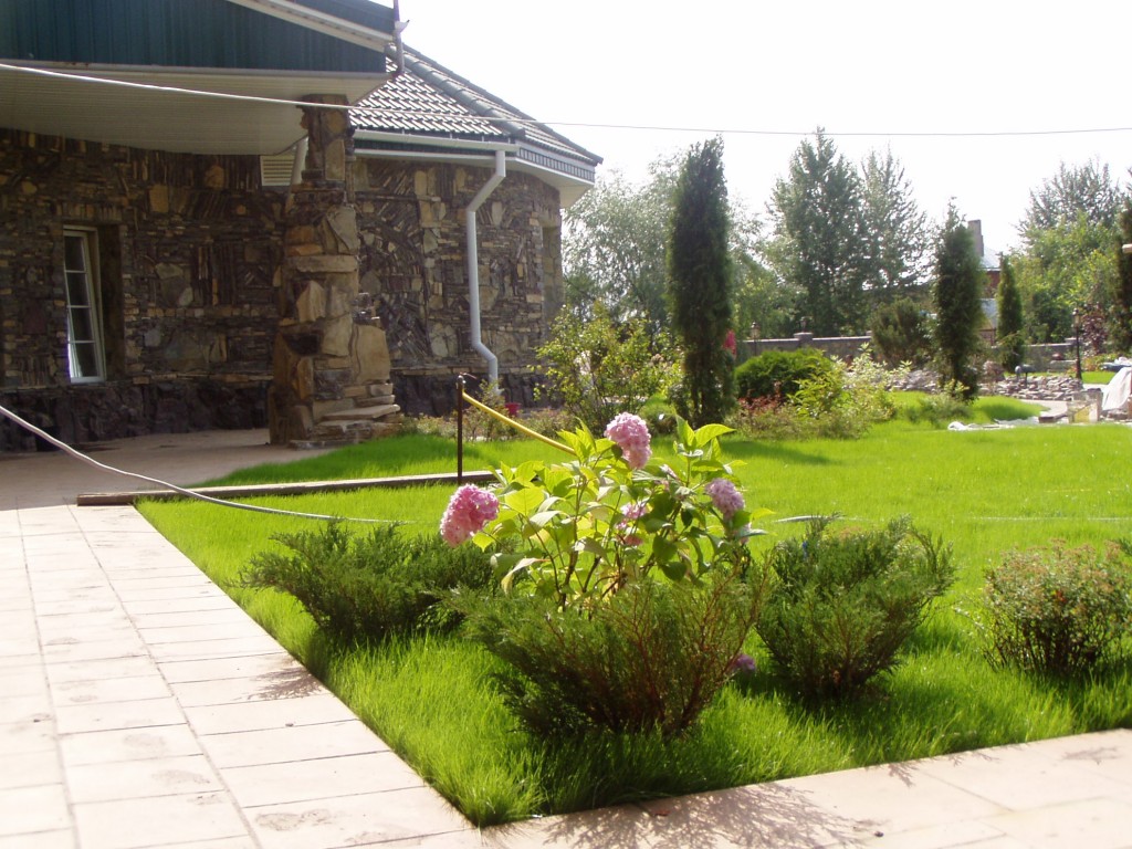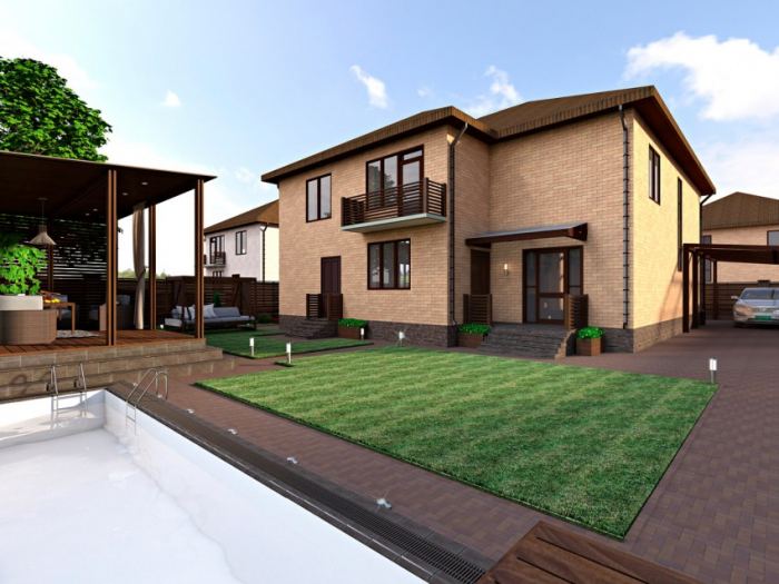 - Côté Est - il y a des chambres "adultes", une mini-salle de gym, une piscine, un dressing, un atelier. Dans cet espace, un excellent éclairage le matin, surtout en été. Ils font généralement une pelouse devant la fenêtre, plantent des buissons bas qui ne bloquent pas l'accès au soleil.