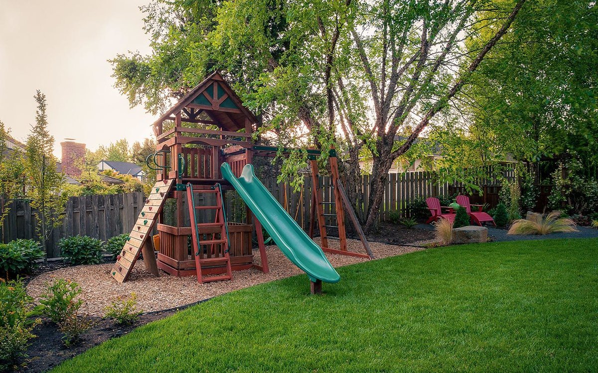 Dans une zone limitée, vous ne ferez pas une grande pelouse, mais vous pouvez toujours trouver une place pour une pelouse propre pour les jeux pour enfants