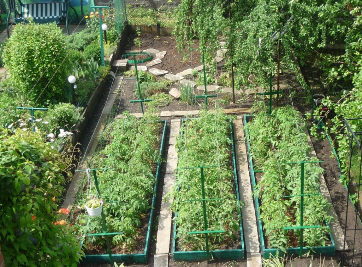 - Le troisième est diagonal. Les objets de jardin sont situés en diagonale. Grâce à cela, une petite parcelle de jardin s'agrandit visuellement.