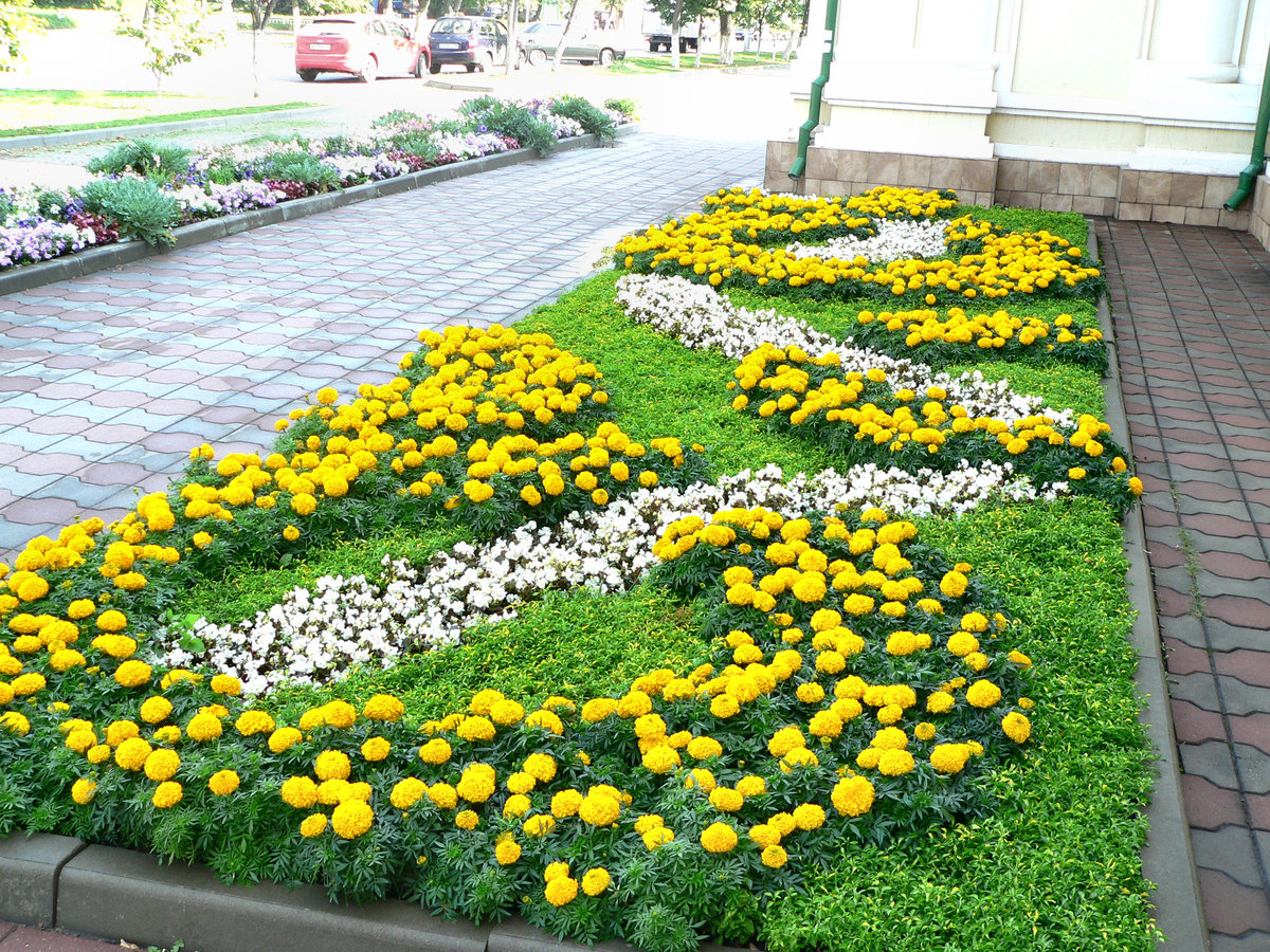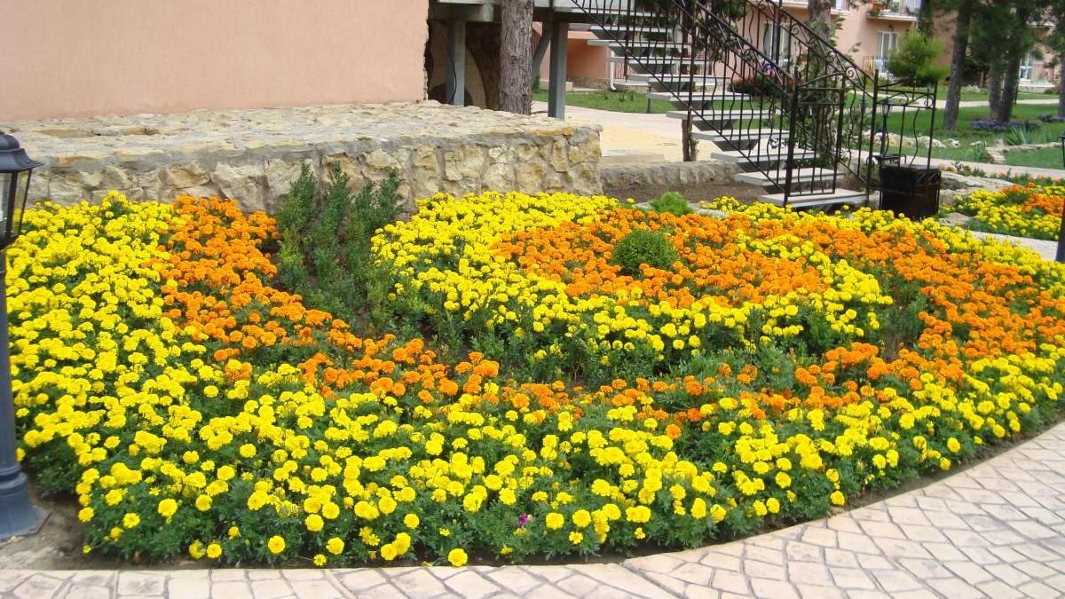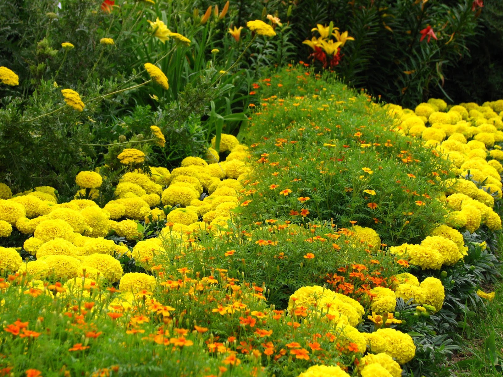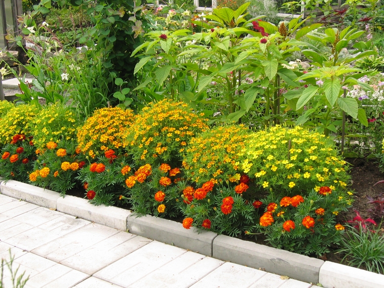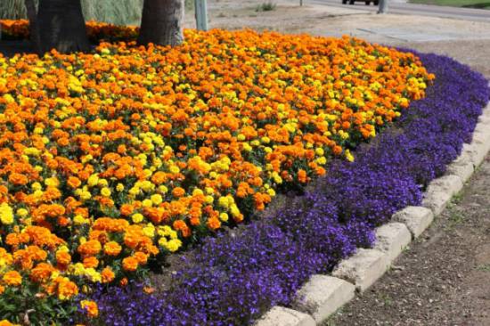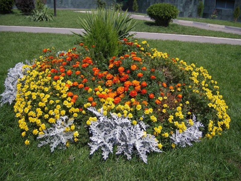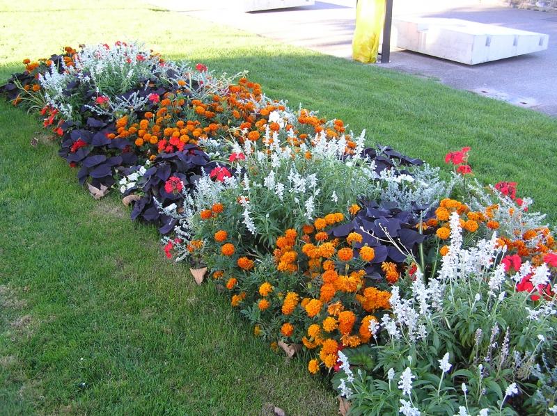 Les parterres de fleurs peuvent être constitués de soucis de différentes variétés ou combinés avec d'autres plantes ornementales