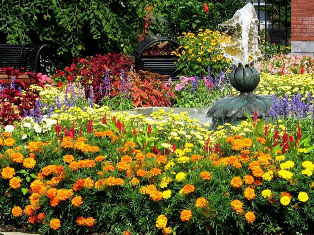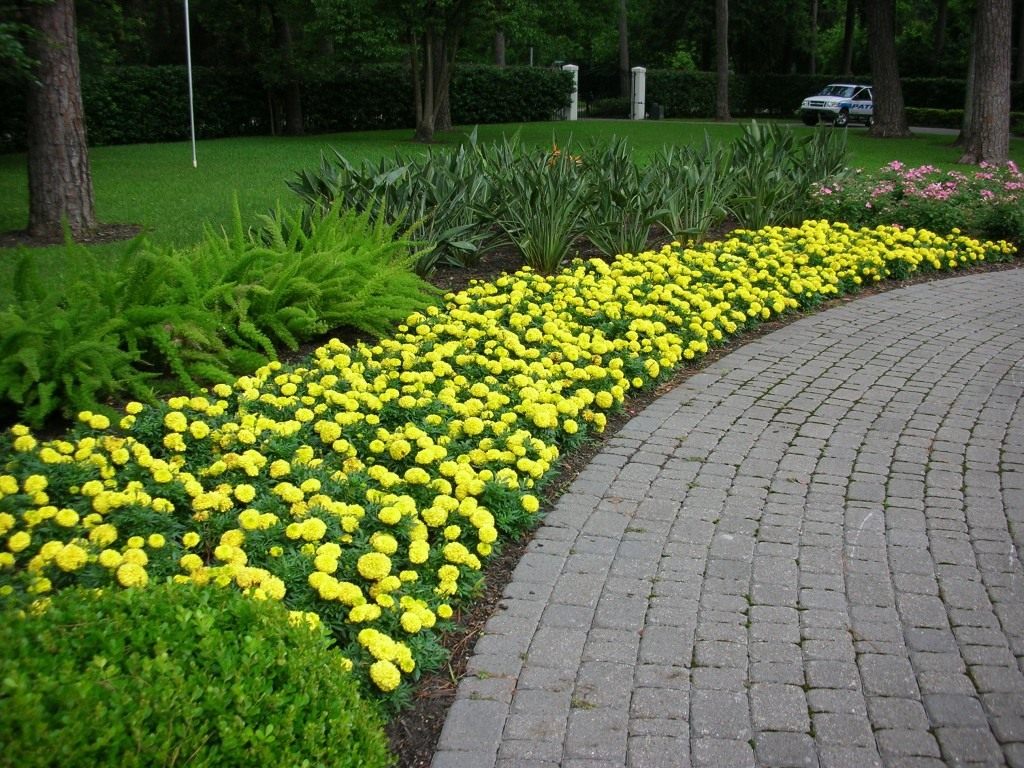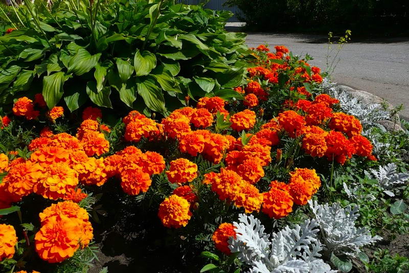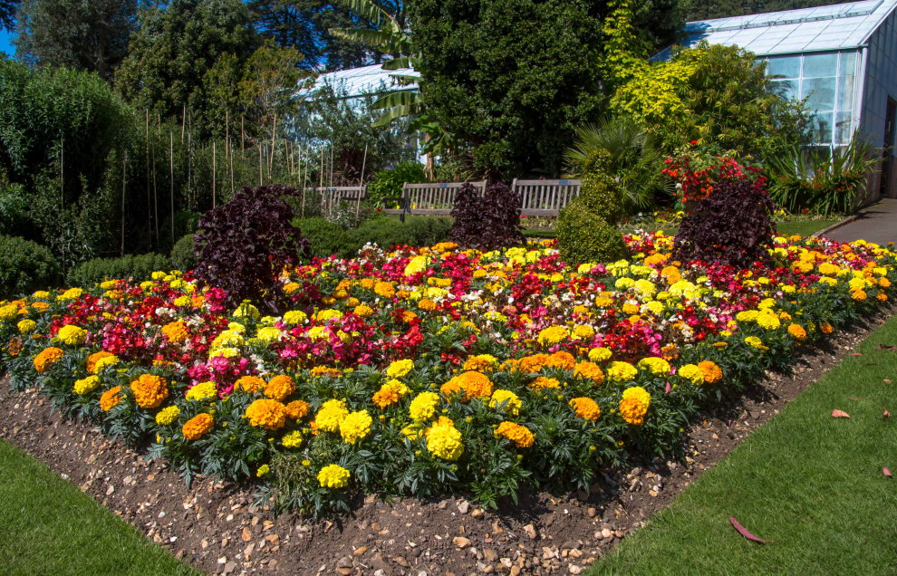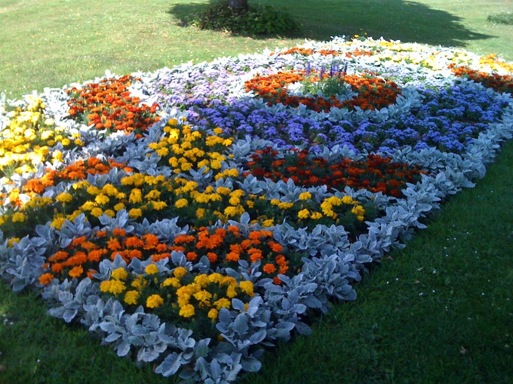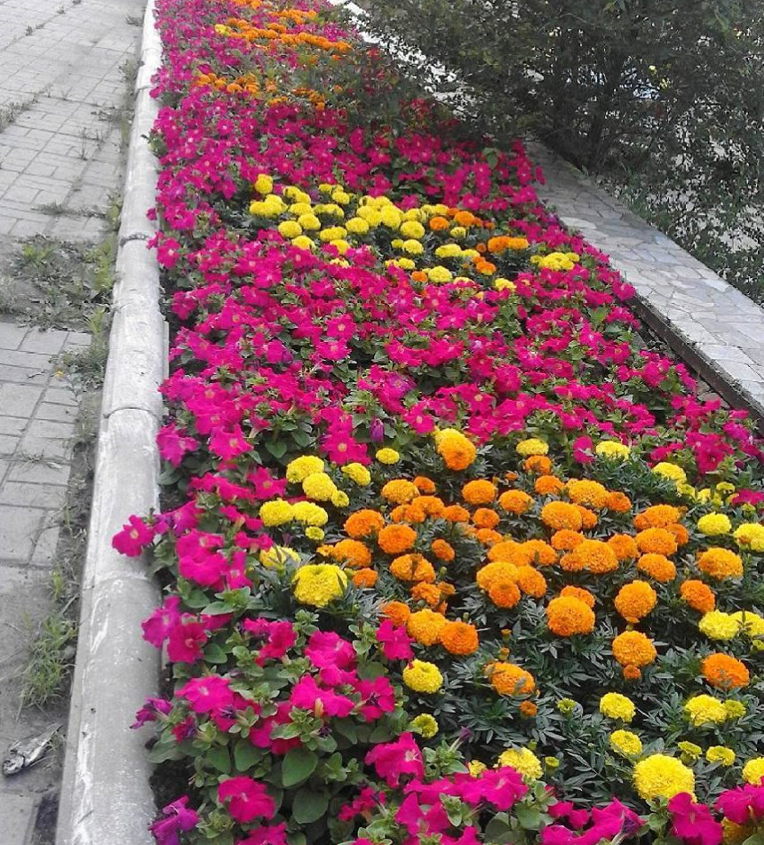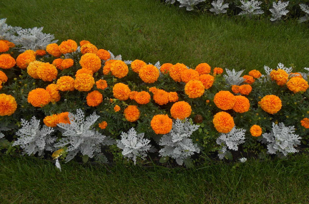 Les parterres de fleurs peuvent être constitués de soucis de différentes variétés ou combinés avec d'autres plantes ornementales