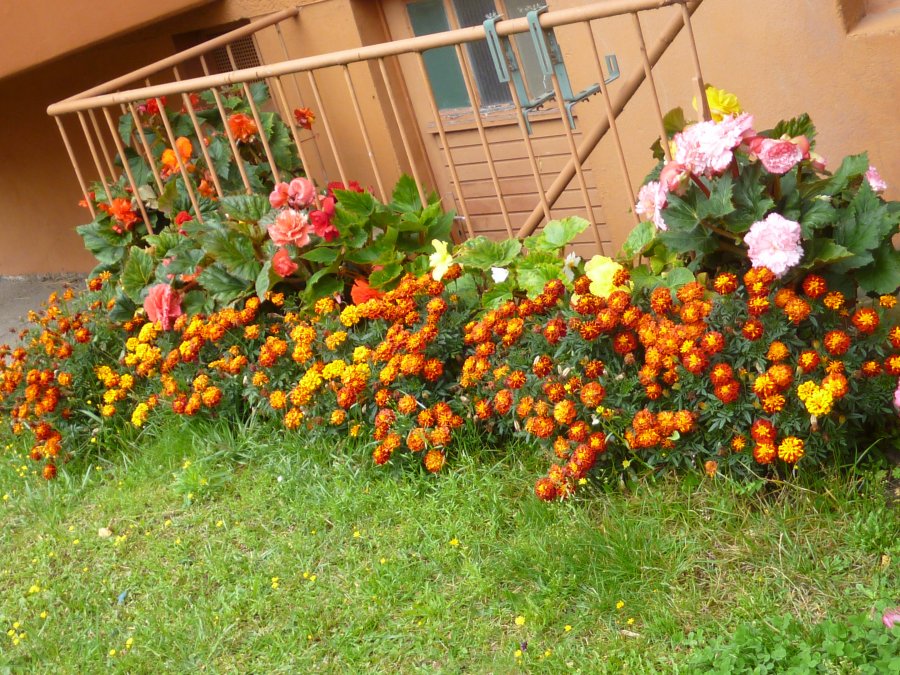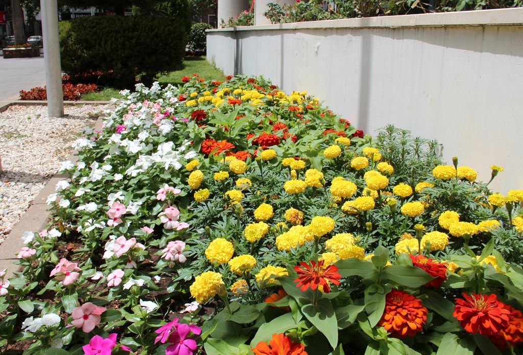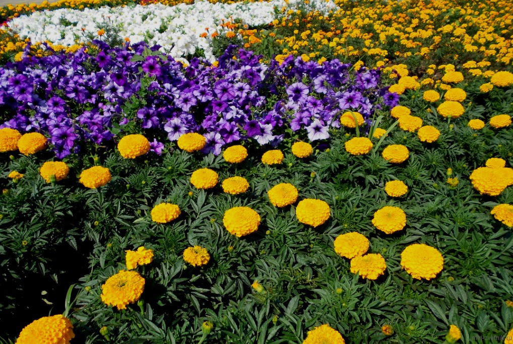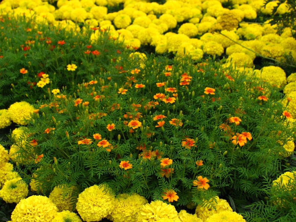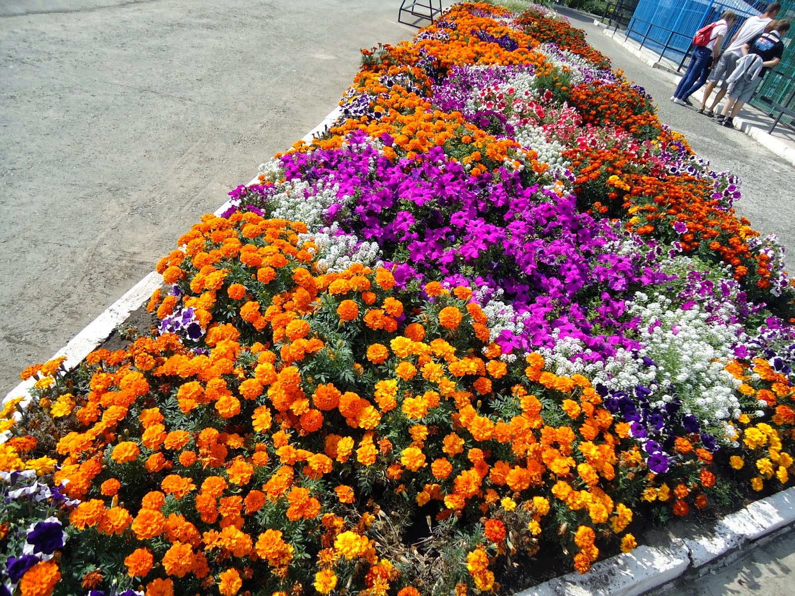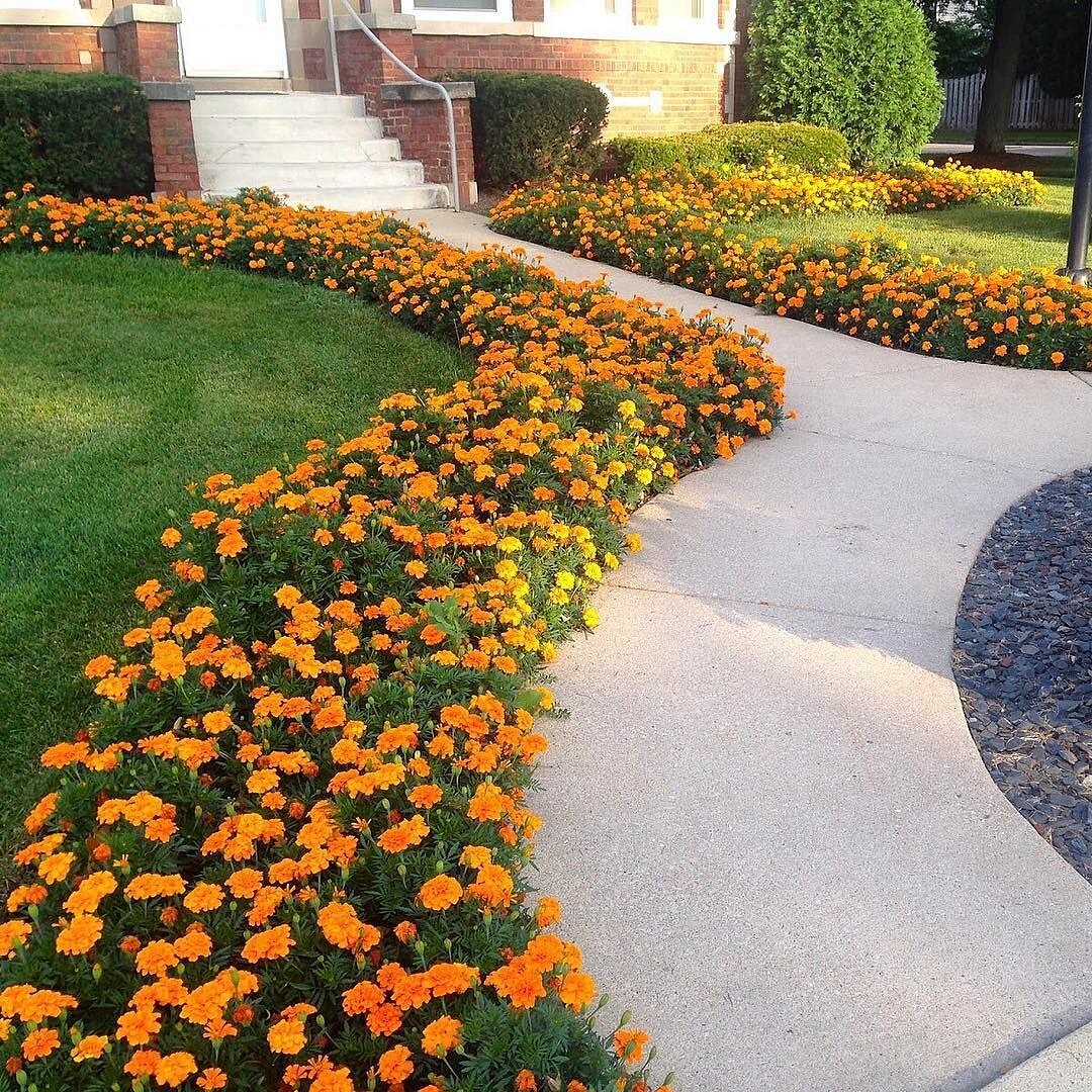 Les parterres de fleurs peuvent être constitués de soucis de différentes variétés ou combinés avec d'autres plantes ornementales