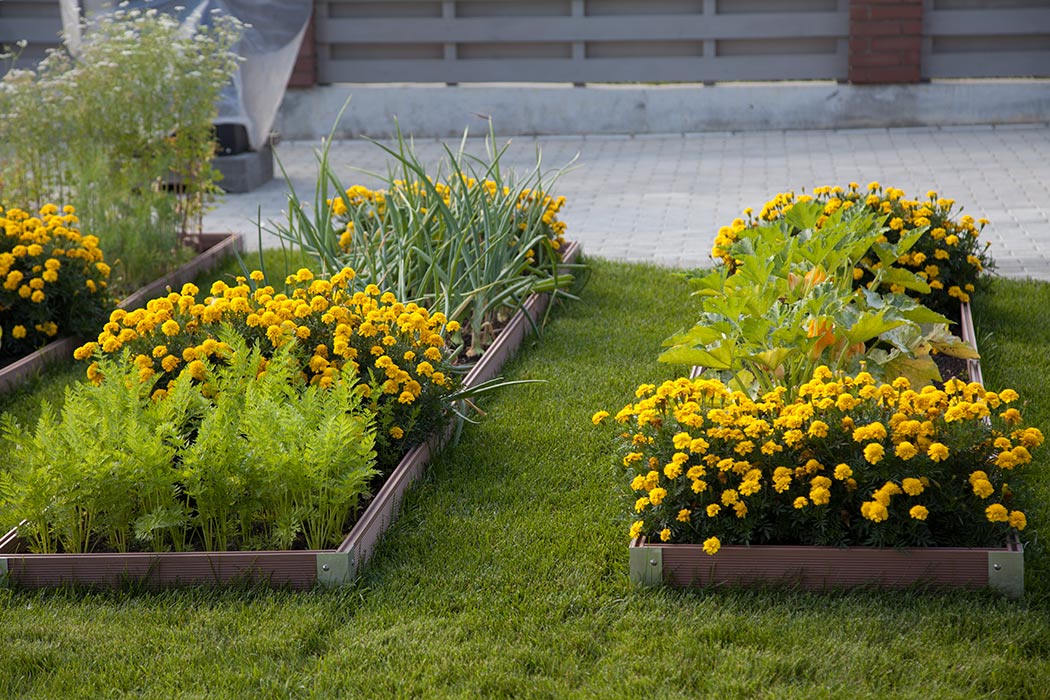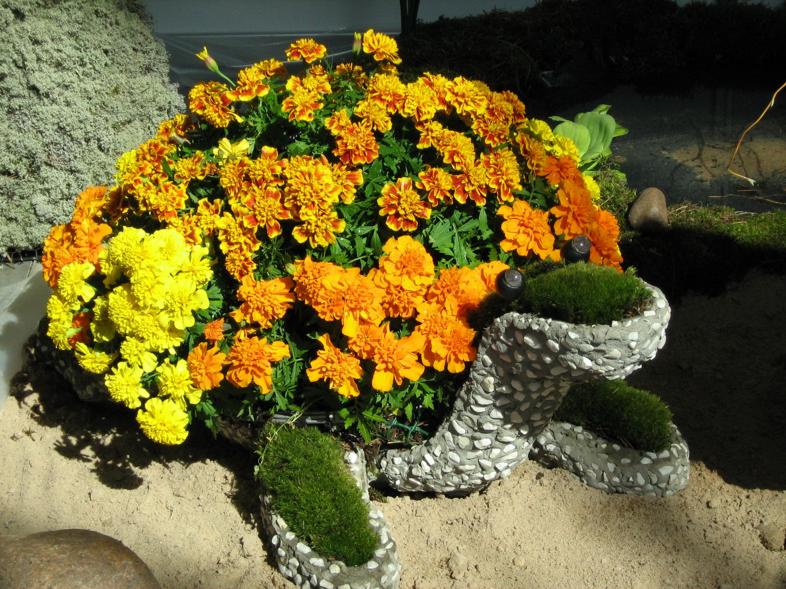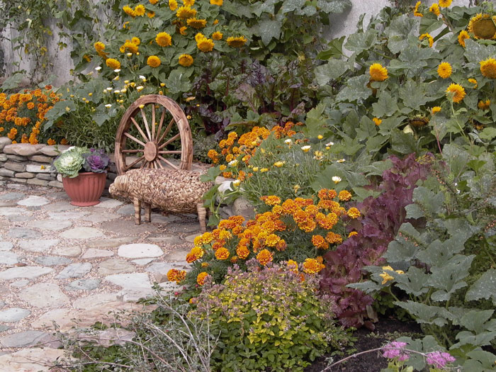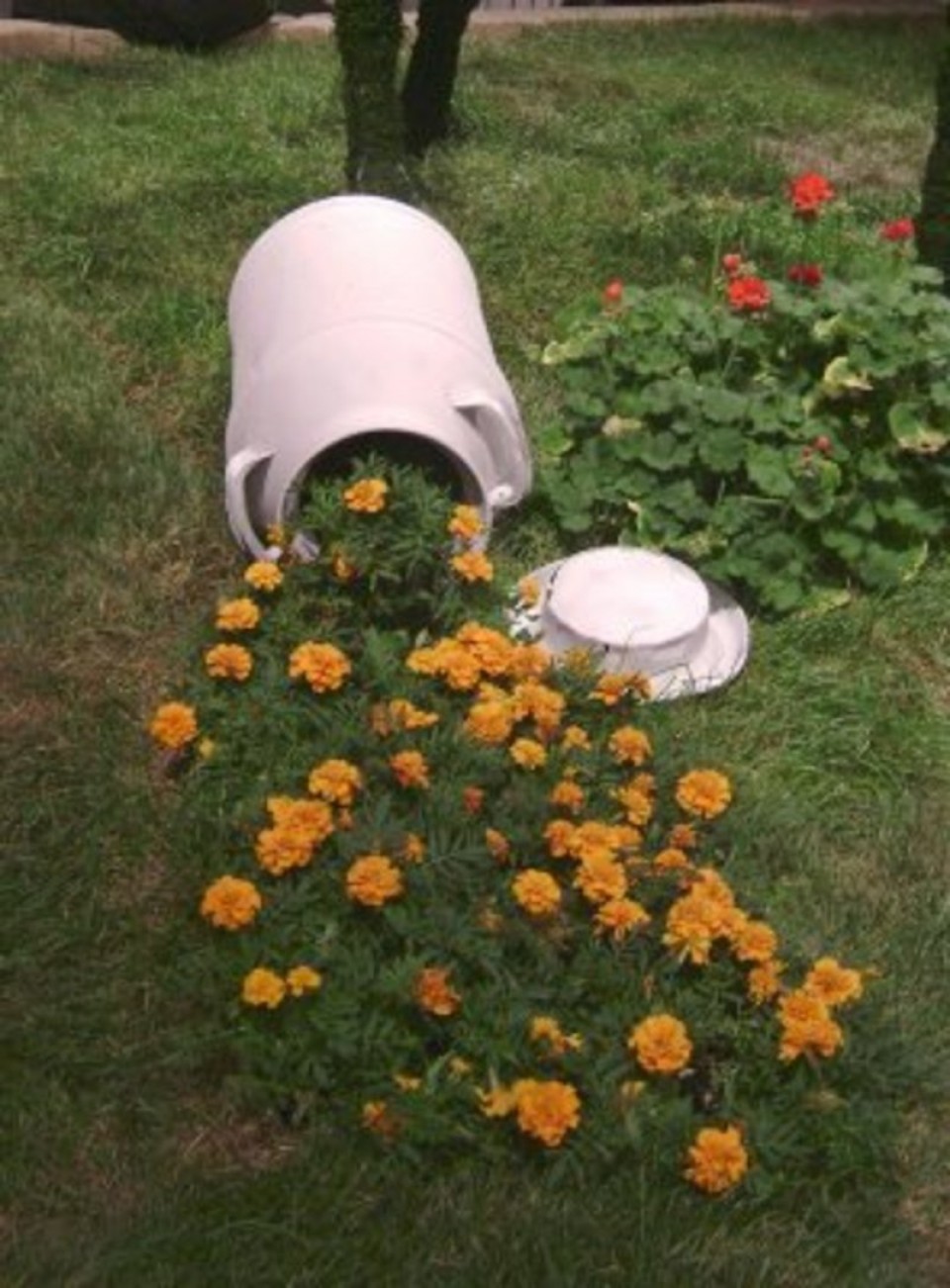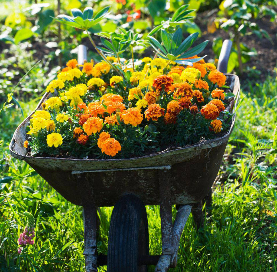 Une composition originale de soucis en fleurs peut décorer un jardin de tout style