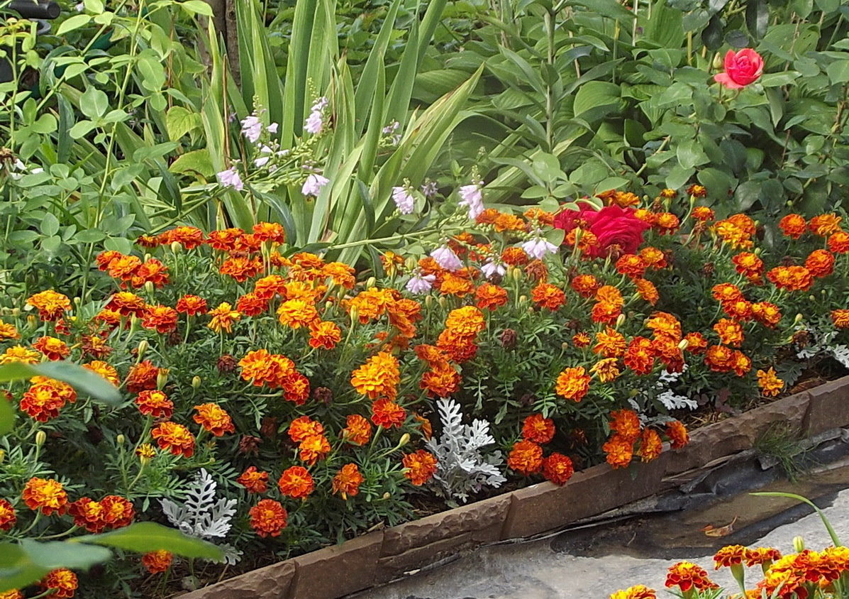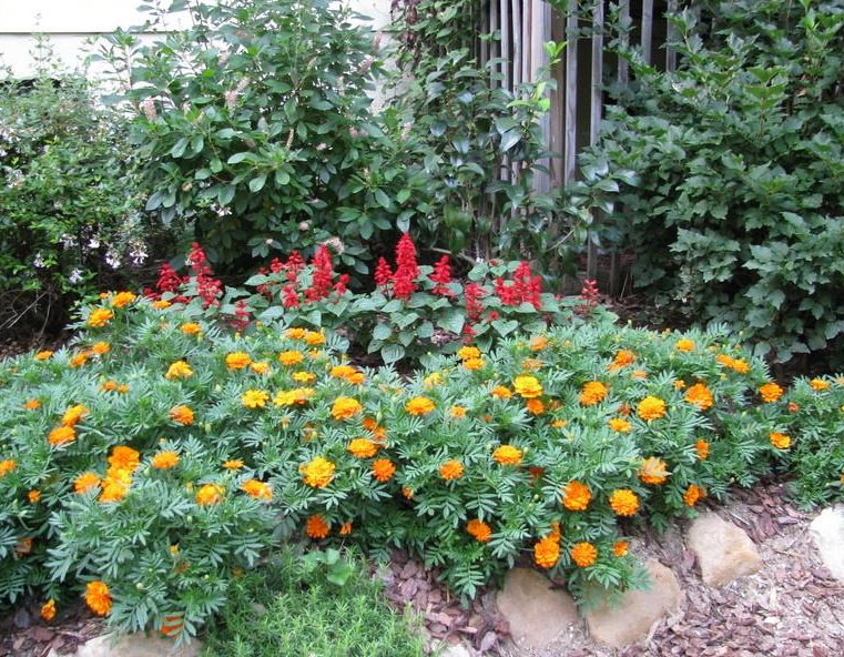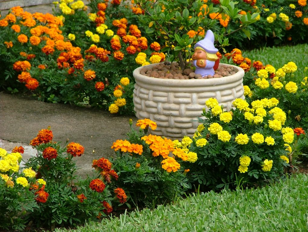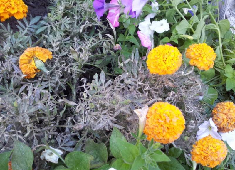 Avec un peu de travail et d'imagination, vous obtiendrez un excellent résultat comme sur la photo des soucis, et la présence d'autres fleurs dans le parterre de fleurs sera un agréable souvenir de l'été dernier.