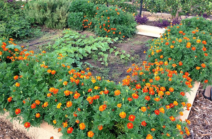 L'arôme spécifique du souci décourage les insectes nuisibles, de sorte que des buissons à fleurs orange peuvent souvent être vus parmi les parterres de jardin