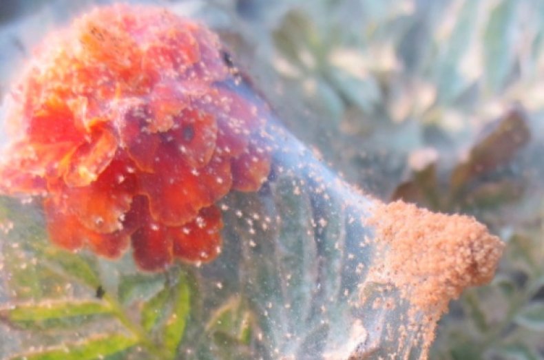 - Les jours de sécheresse, il existe un danger d'acariens. Pour le combattre, des pulvérisations fréquentes d'eau sont utilisées.Si le moment est manqué - parmi le feuillage et les bourgeons sur le parterre de fleurs, il y a une toile d'araignée, une infusion d'un mélange de millefeuille, d'oignon et de piment soulagera le ravageur.