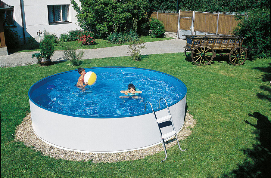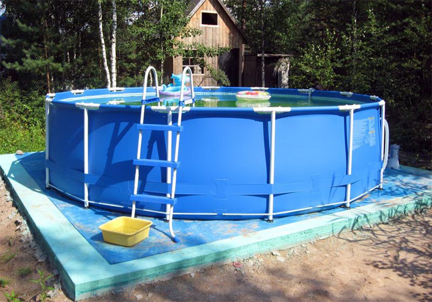 Le plus abordable est une piscine gonflable. Ils sont faciles à installer, à démonter ou à transporter d'un endroit à l'autre. Il s'agit de l'option la plus simple pour organiser une piscine saisonnière pour enfants. Le diamètre atteint 6 mètres et le volume interne ne dépasse pas 25 000 litres.