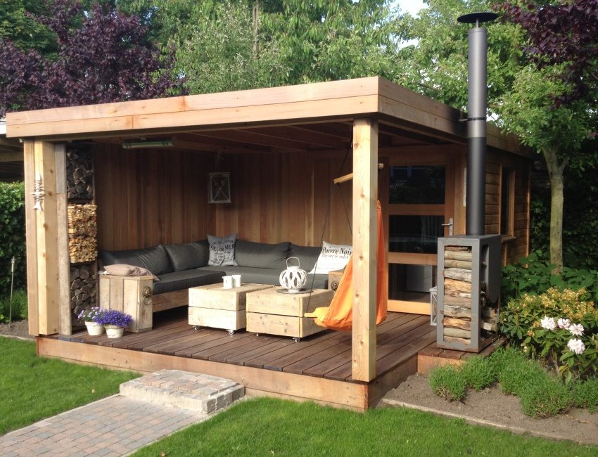 En fait, il n'y a pas tant d'options traditionnelles pour organiser une aire de loisirs dans un chalet d'été. Un terrain de 15 acres ne vous permet pas de «faire demi-tour» et de construire plusieurs sites avec la transition des activités de plein air à un endroit où vous pourrez vous asseoir entre amis.