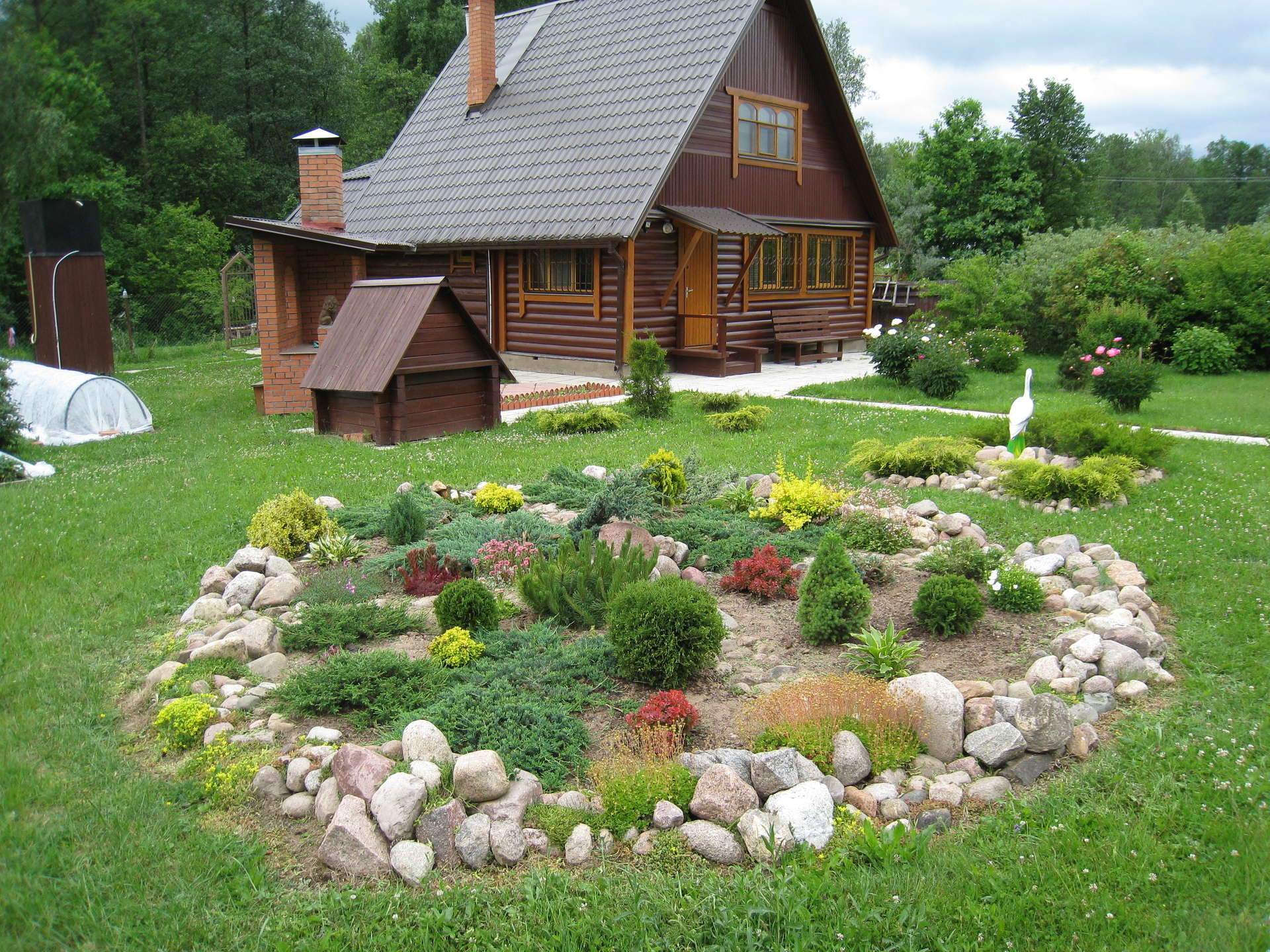Réaliser un aménagement paysager dans un jardin (on l'appelle aussi un village) permet au propriétaire de placer à la fois un jardin et un jardin sur son terrain. Il n'y a pas de lignes claires et de chemins géométriques rectilignes, pas de place pour l'exotisme.