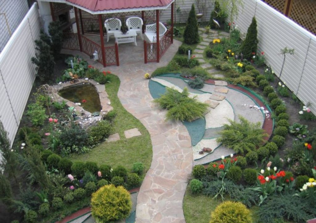 Le design mixte convient aux propriétaires de ces maisons où chacun a sa propre idée du "jardin des rêves".Si l'espace est zoné, chaque membre de la famille peut créer son propre «paradis».