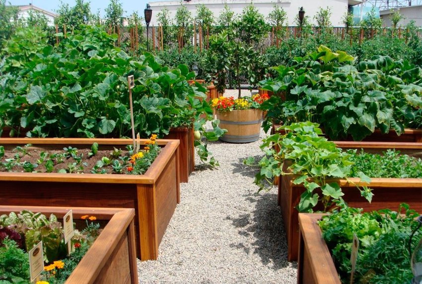 Le jardin et le jardin sont aménagés en fonction de l'illumination du site, mais pas à proximité: les produits chimiques qui traitent périodiquement le jardin endommageront les cultures du jardin.