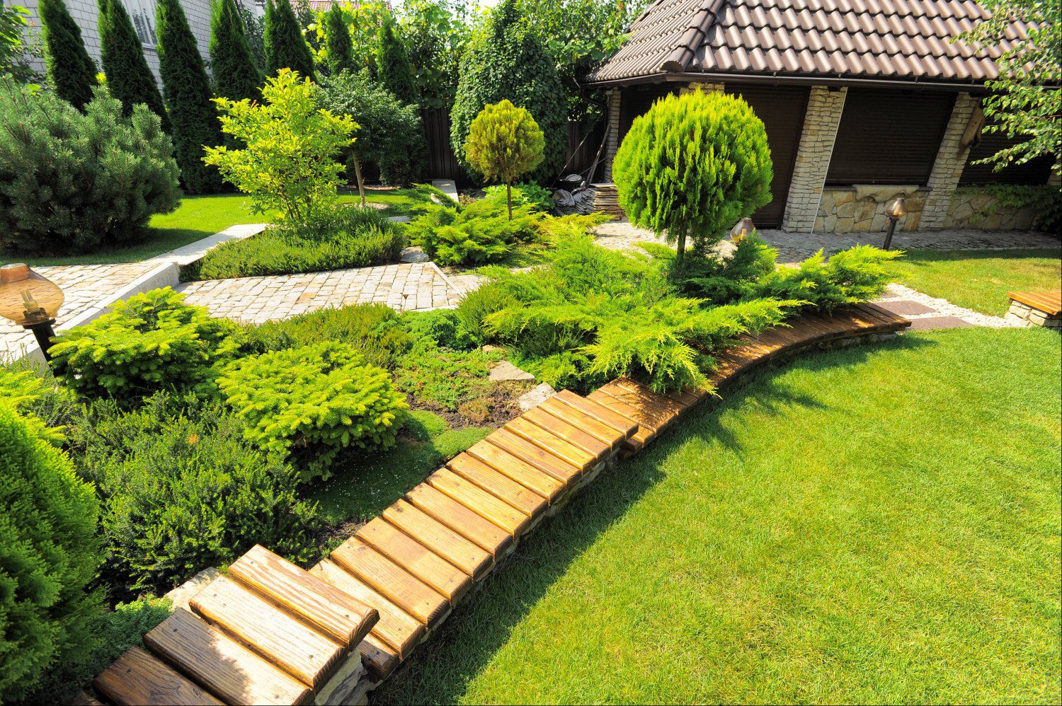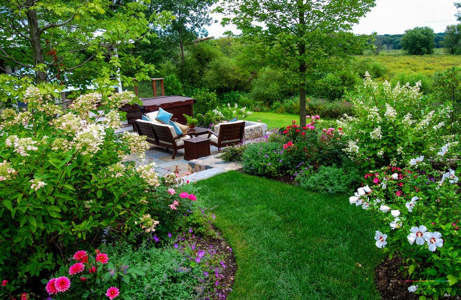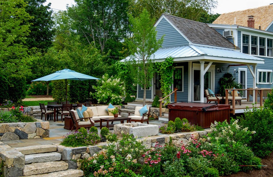 Exemples de beaux aménagements paysagers d'un chalet d'été