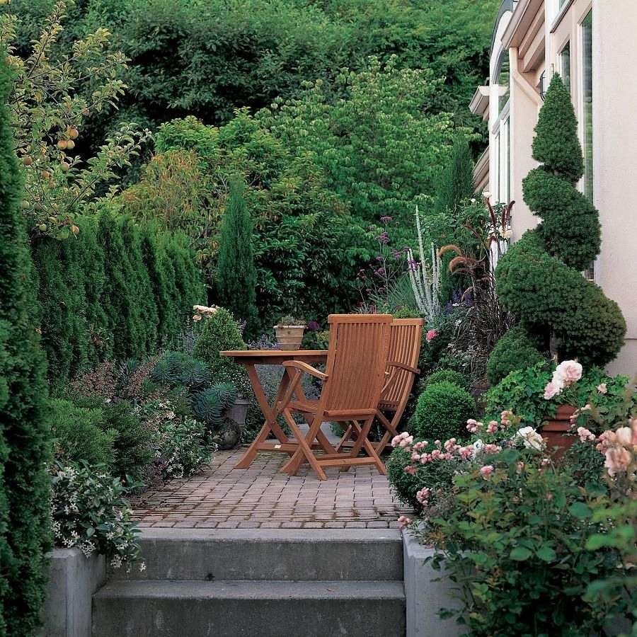 Les projets paysagers réussis du jardin sont présentés dans une sélection de photographies. Les plantes sont sélectionnées séparément pour chacune des zones. Des cultures sans prétention sont plantées dans des coins reculés.