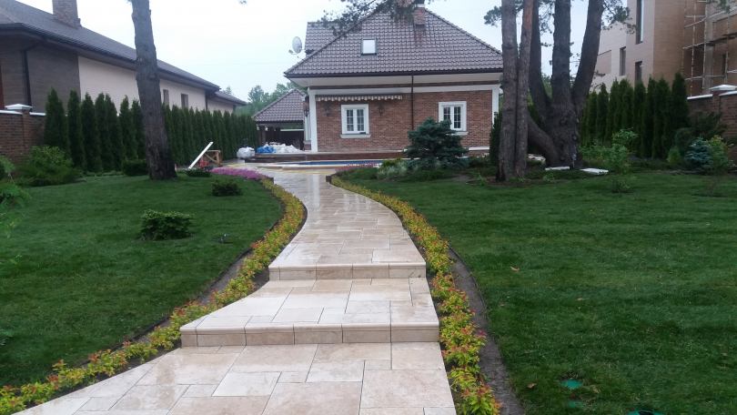 - Le rez-de-chaussée n'est pas conçu pour la marche, la hauteur de la couverture est jusqu'à 12 cm.La pelouse sert de toile de fond pour les groupes de fleurs, les sculptures, souligne la beauté des bâtiments.