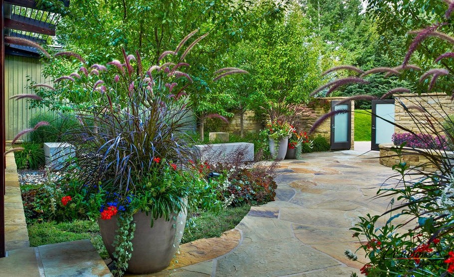 Dans les zones montagneuses du côté nord des pistes, où les plantes ornementales ne poussent pas bien, recourez à un aménagement paysager artificiel. Le décor n'a pas besoin de soleil, le vent n'interfère pas. Pour le phytoscène, des sols de pelouse sont utilisés et toutes sortes de décorations en pot sont utilisées comme plantes.