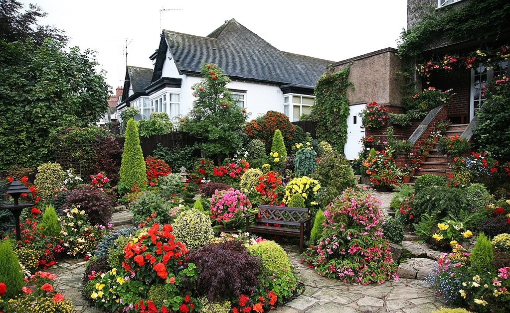 - Jardin et parterres de fleurs qui poussent côte à côte;