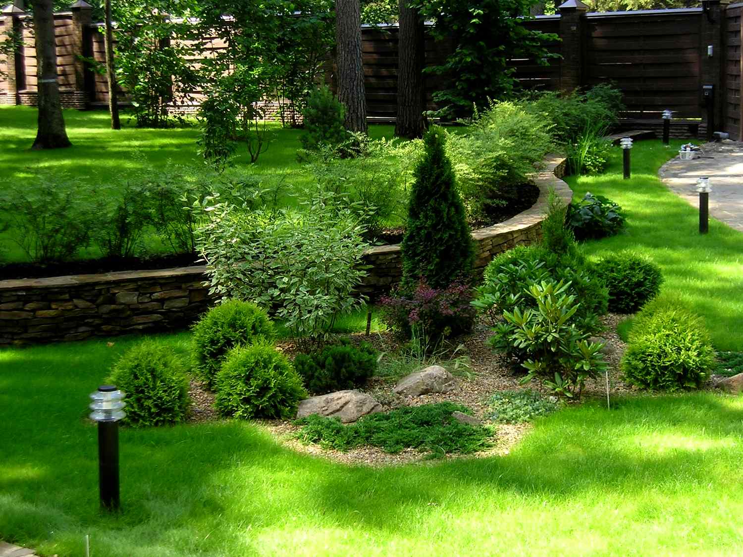Lorsque vous choisissez ce style de jardin, vous n'avez pas besoin de changer de terrain, le ravin peut être transformé en un petit étang, la montée peut être transformée en parterre de fleurs.