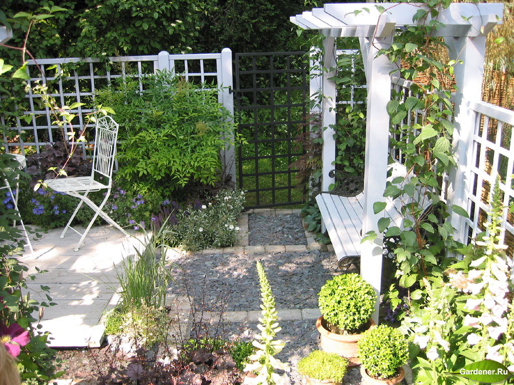 Une clôture autour du site ou de hautes barrières similaires à l'intérieur du jardin réduira visuellement l'espace déjà petit.