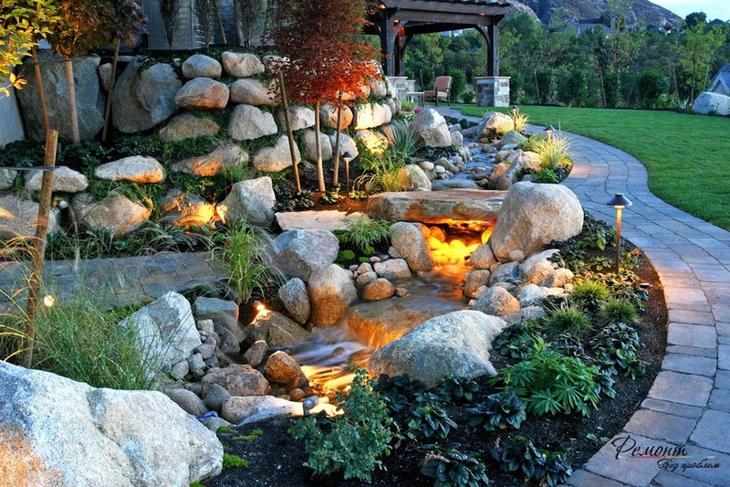 - Chutes d'eau qui sonnent - une cascade est créée qui produit un son fort et clair. Le matériau est uniquement de la pierre naturelle.