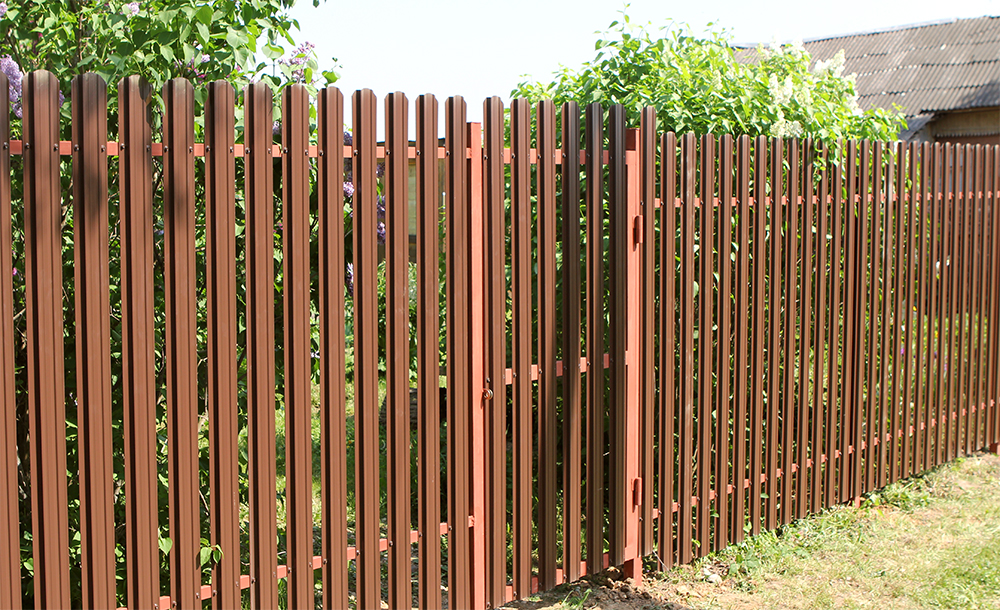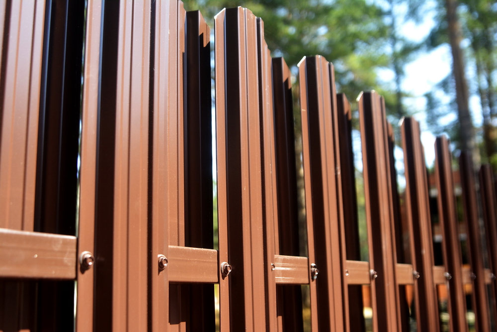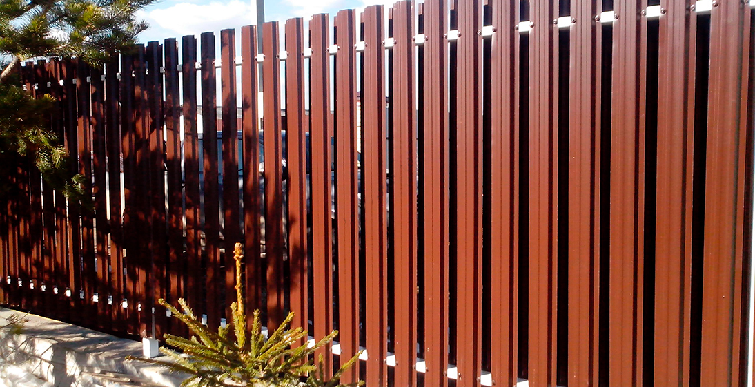 Aujourd'hui, le matériau le plus populaire pour un barrage est le métal. Dans la fabrication de sections d'une telle clôture entre les plaques, des intervalles uniformes sont établis. De plus, devant le site, ils font plus pour qu'une partie de la zone magnifiquement conçue soit visible.