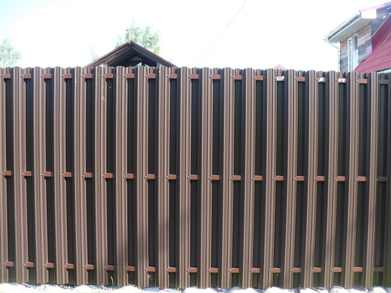 - Échecs (double rangée) - idéal pour ceux qui ont besoin d'une clôture vierge. Sur les décalages placés entre les poteaux de deux côtés, les rails sont fixes. De plus, chacun de plusieurs centimètres se chevauche situé de l'autre côté. L'emplacement est comme décalé. L'écart entre les rails est inférieur à sa largeur.