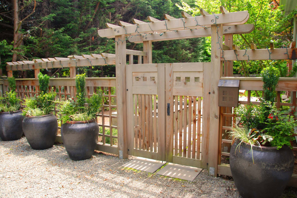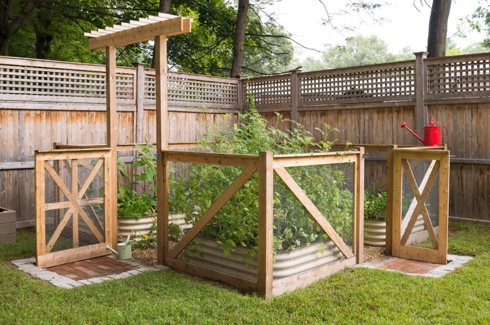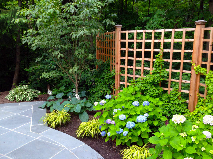 Une simple clôture en bois peut être décorée d'inserts en treillis
