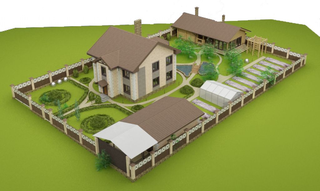Une option assez populaire est lorsque tous les bâtiments sont situés près de la route, mais à plus de 5 mètres de celle-ci. Il est nécessaire de construire des bâtiments de ferme afin qu'ils soient dans le domaine public, mais en même temps, ils ne ressemblent pas à un élément distinct d'une conception paysagère unique. Passons à un examen plus détaillé des zones individuelles.
