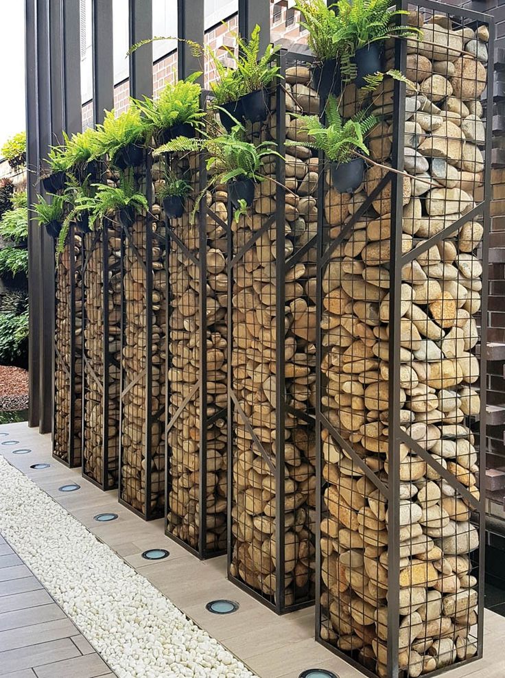 Aujourd'hui, les gabions sont des éléments décoratifs très inhabituels.